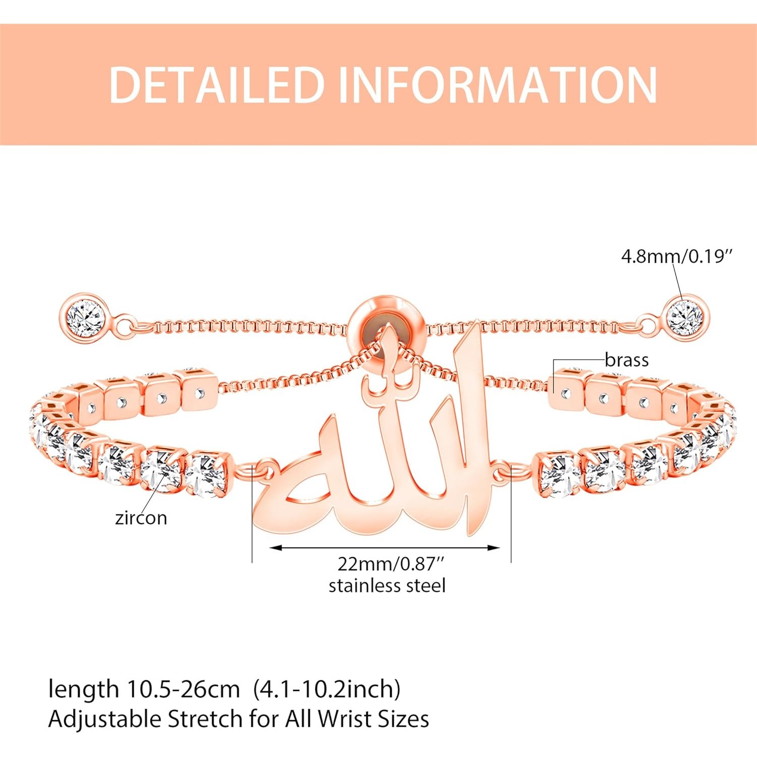Crafted from high-quality stainless steel, this Islamic bracelet is hypoallergenic, rust-resistant, and designed for long-lasting wear. Available in white gold, gold, rose gold, and black finishes to suit different styles and preferences.