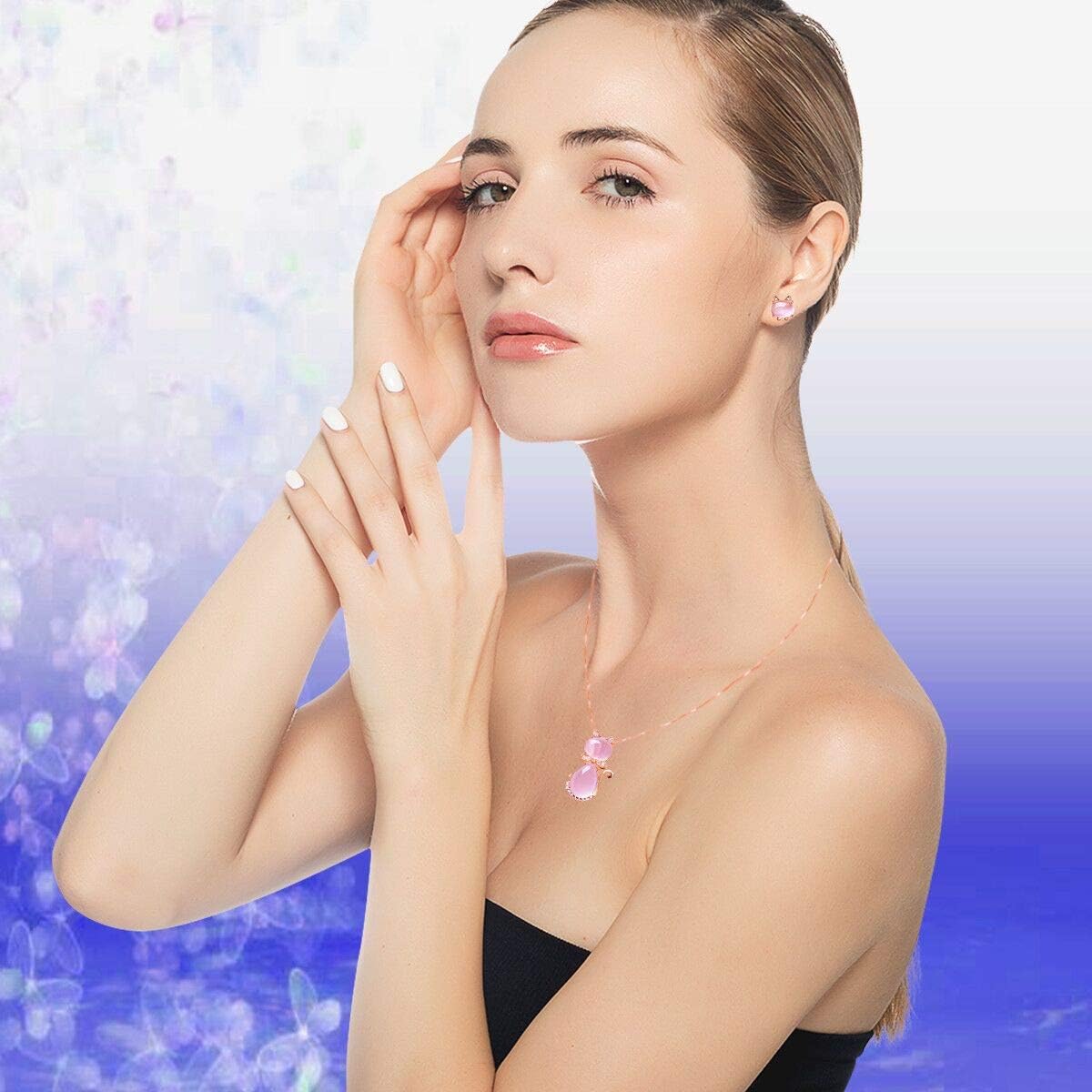 This adorable cat jewelry set features a glowing pink cat eye stone paired with sparkling cubic zirconia accents. Designed with...
