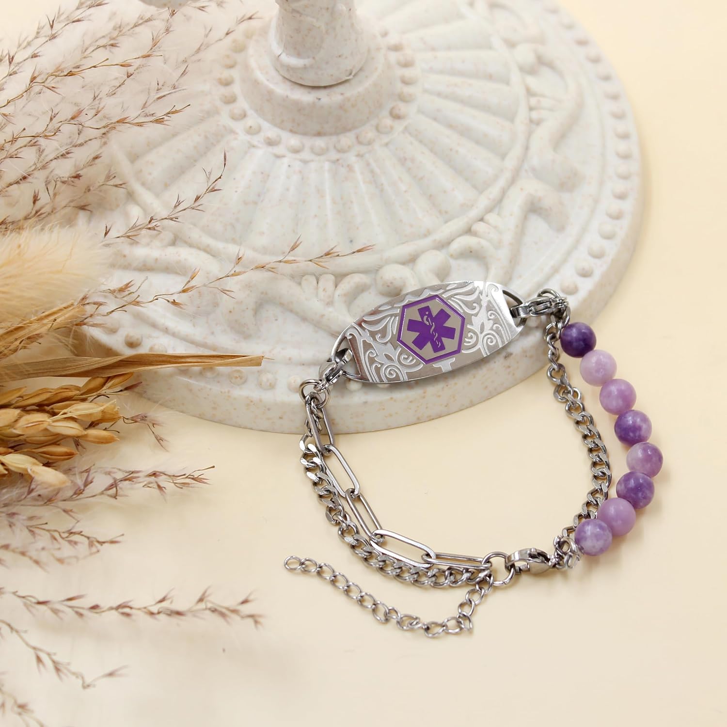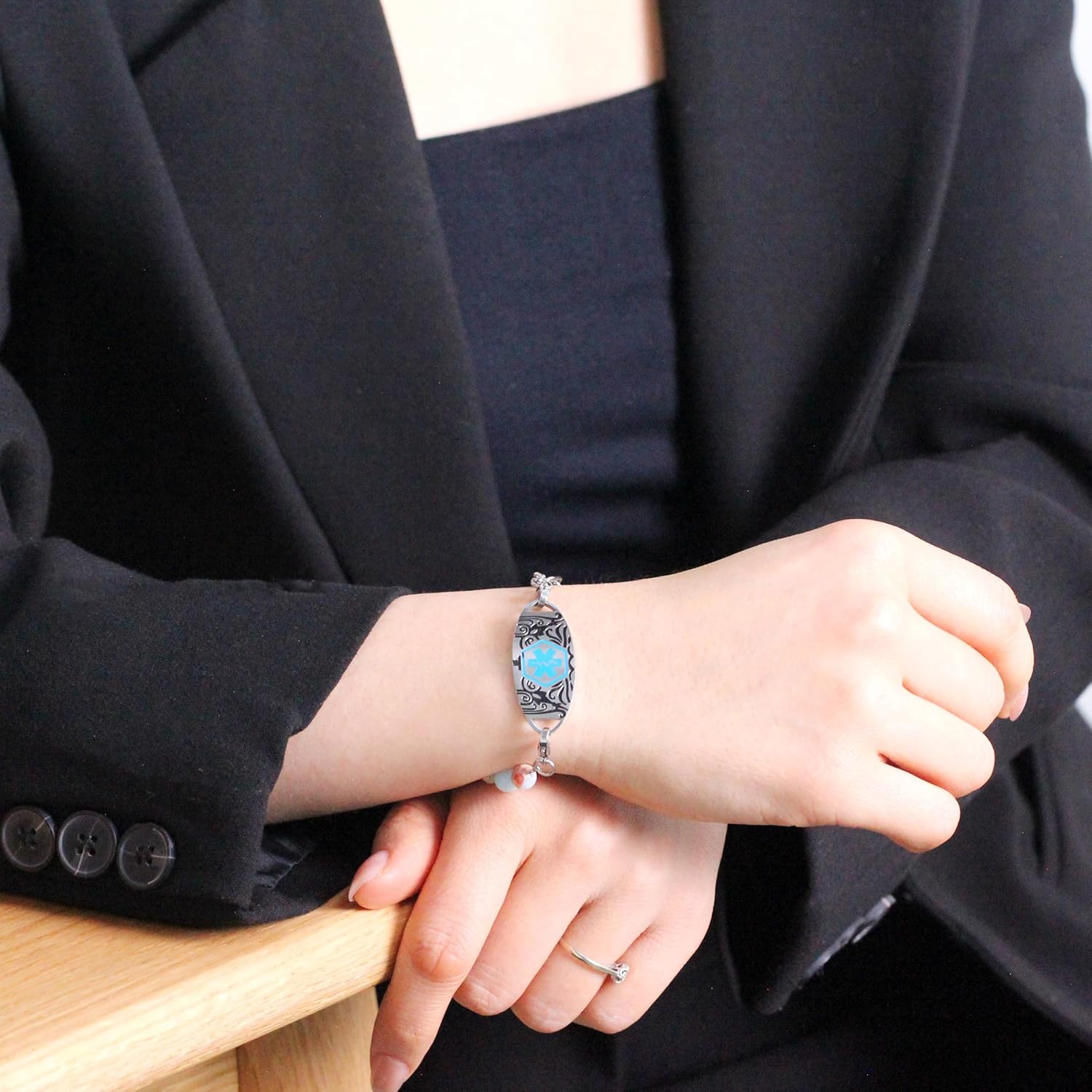 Adjustable from 17–22cm, this bracelet is designed to accommodate most adult wrists. The dual-strand structure and interchangeable clasp system provide a stable yet flexible fit for seniors and those requiring medical tags.