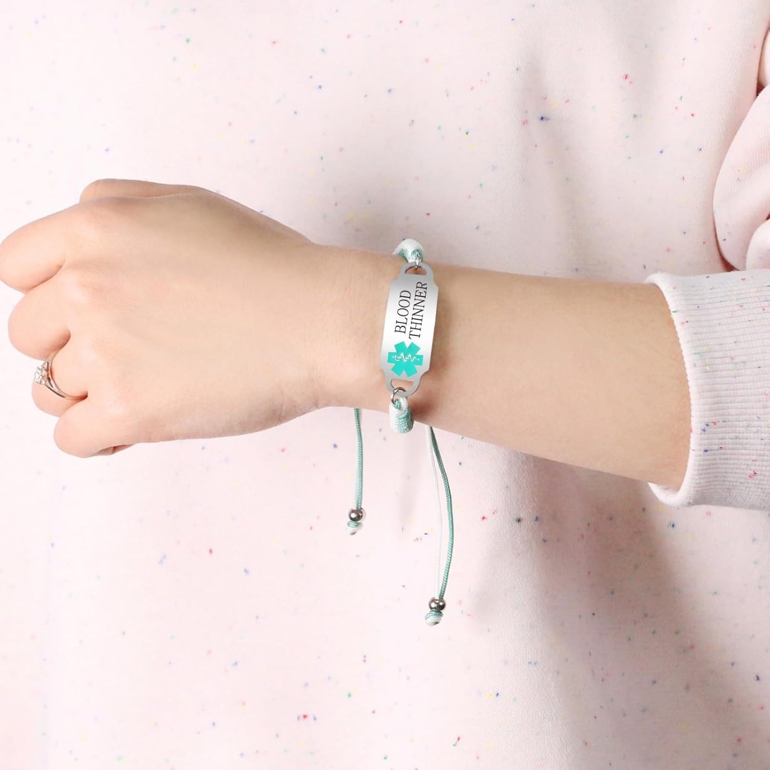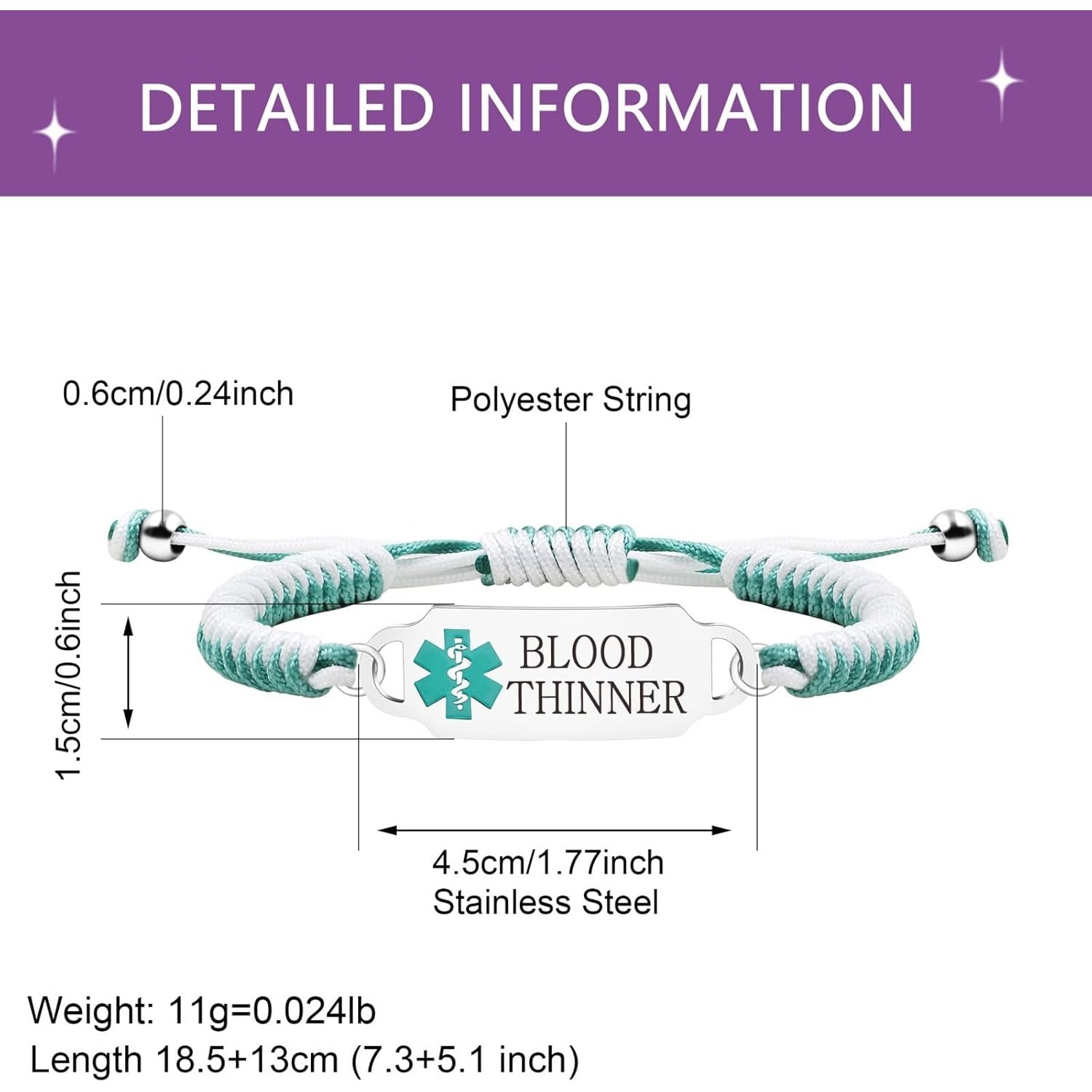 Dynamic QR Code Medical Alert Bracelet, Adjustable Braided Rope ID Wristband for Men Women, Scan to Edit Emergency Info, No Engraving Needed, Allergy Blood Thinner Smart Medical Jewelry