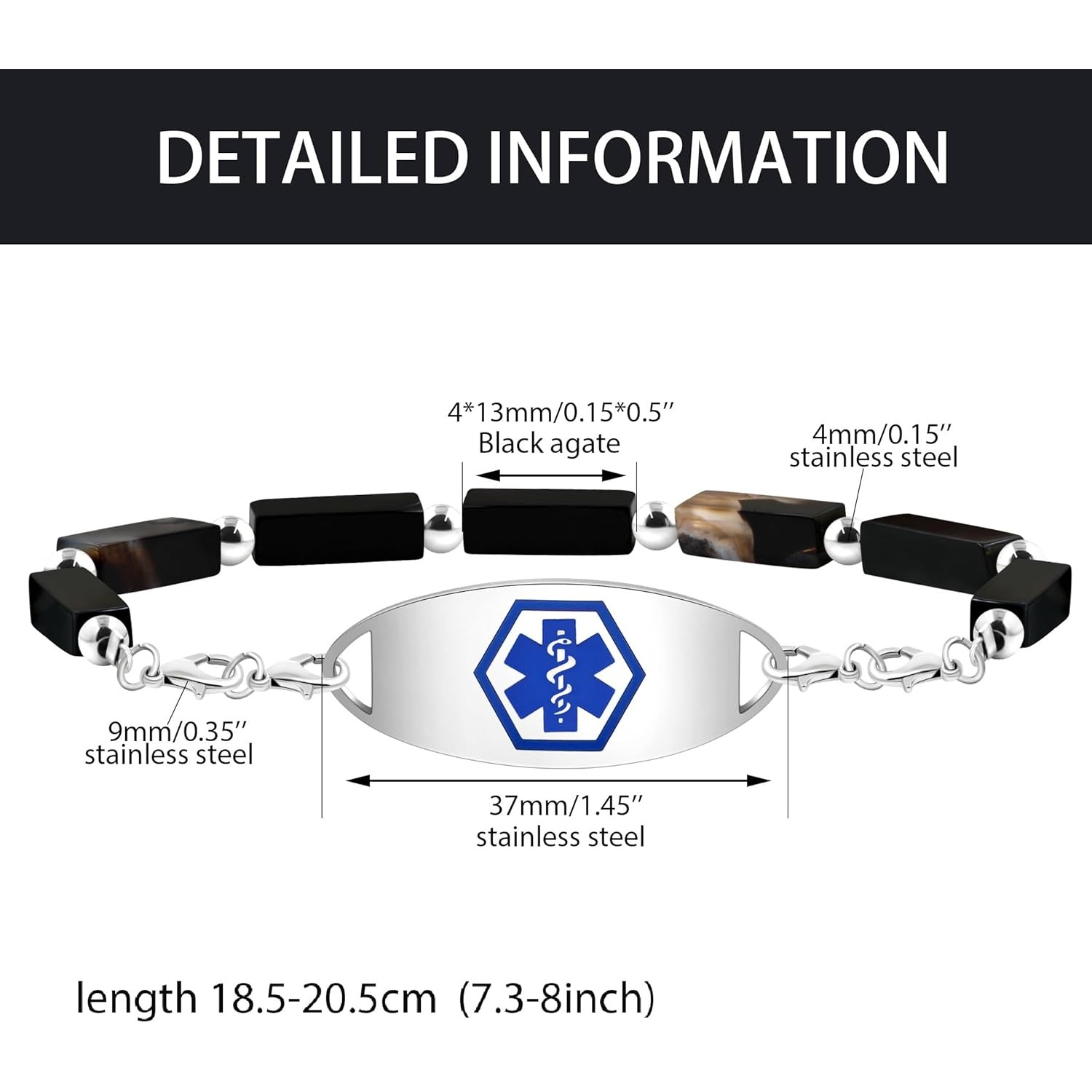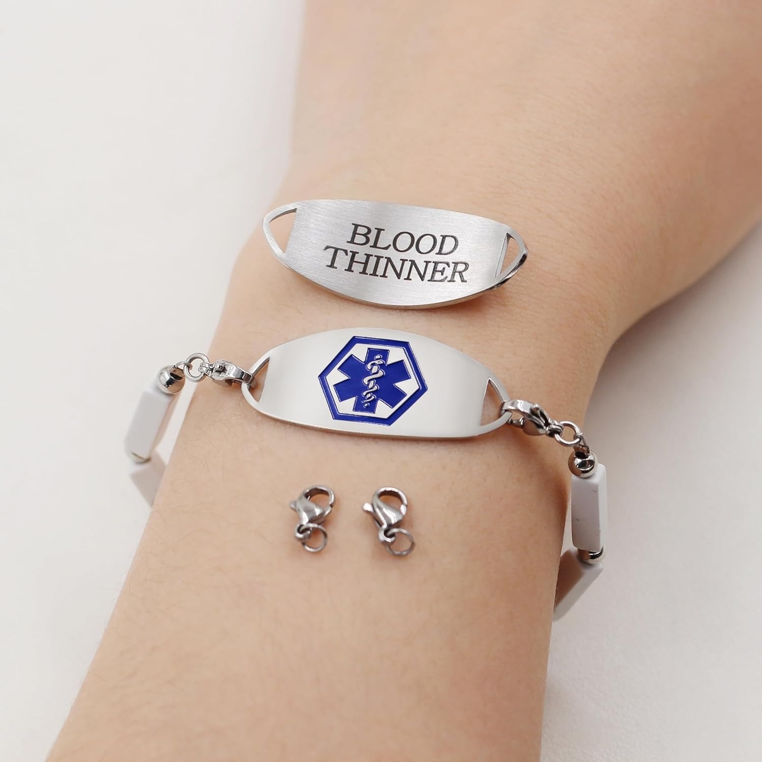The medical ID plate is made of durable stainless steel, rust-resistant and suitable for long-term use. The double lobster clasp design allows easy opening and supports interchangeable ID plates.