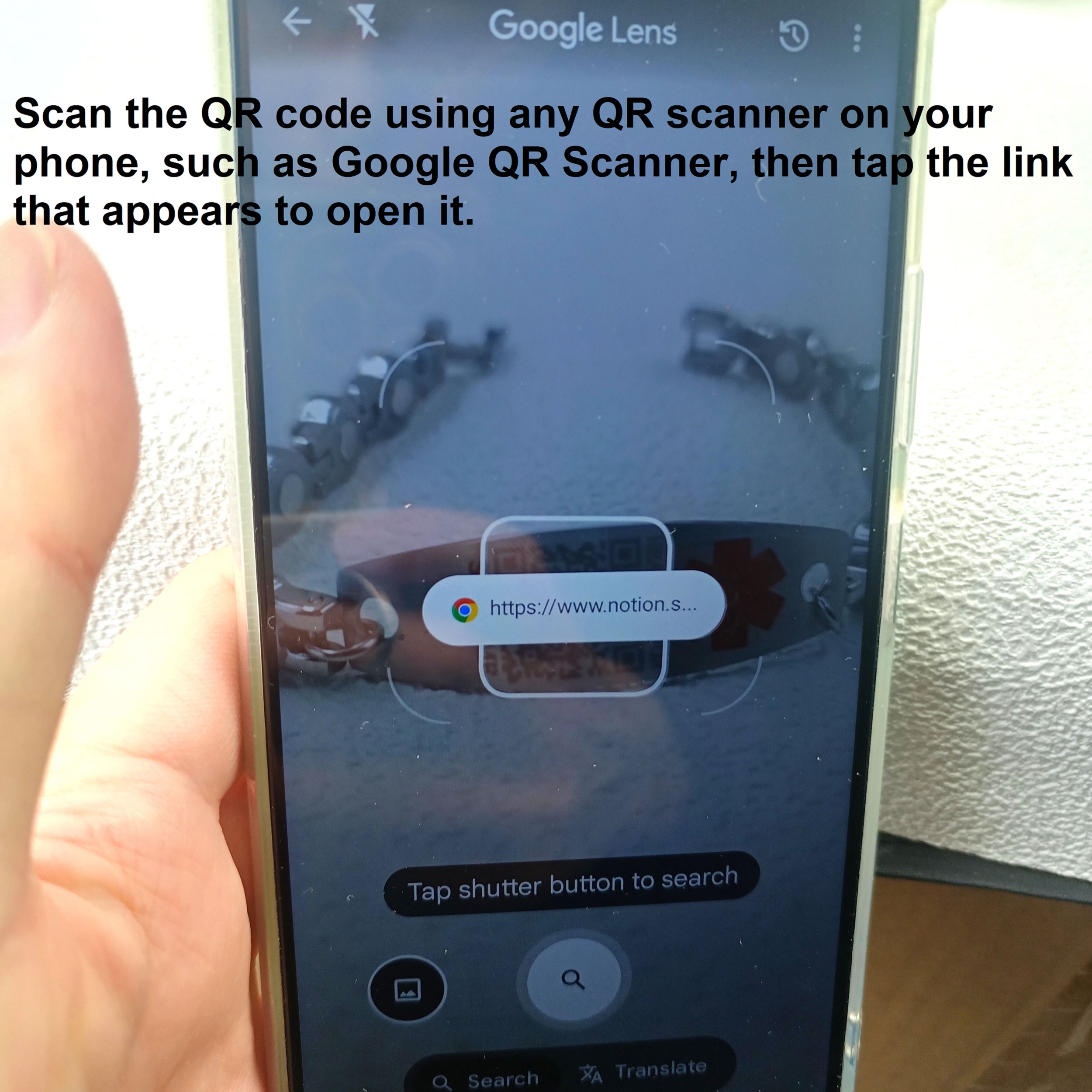 ️ This bracelet is designed to help share important information quickly. It is not a medical device or a substitute for professional medical care.