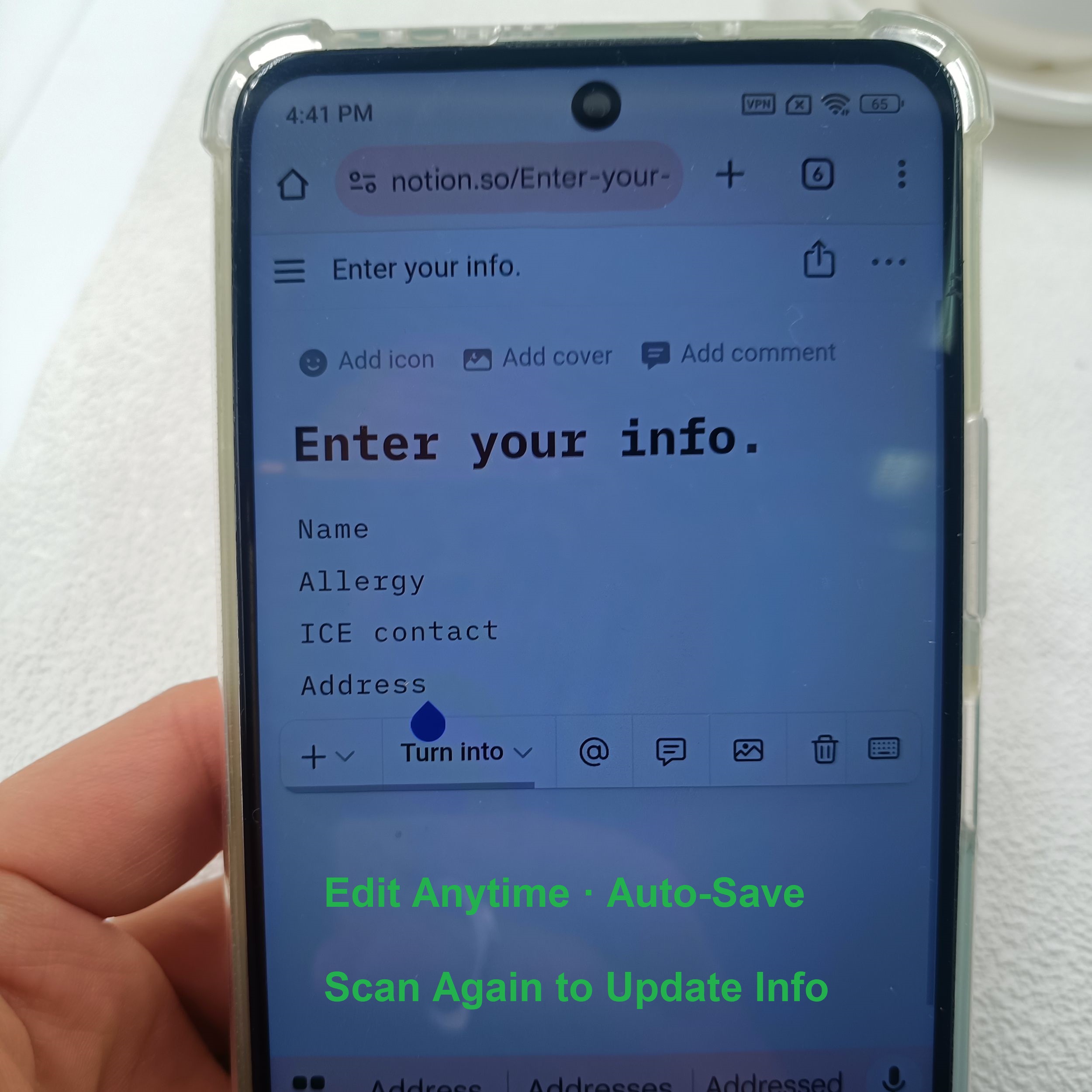 All changes are saved automatically. If your information changes in the future, just scan the QR code again to update anytime.