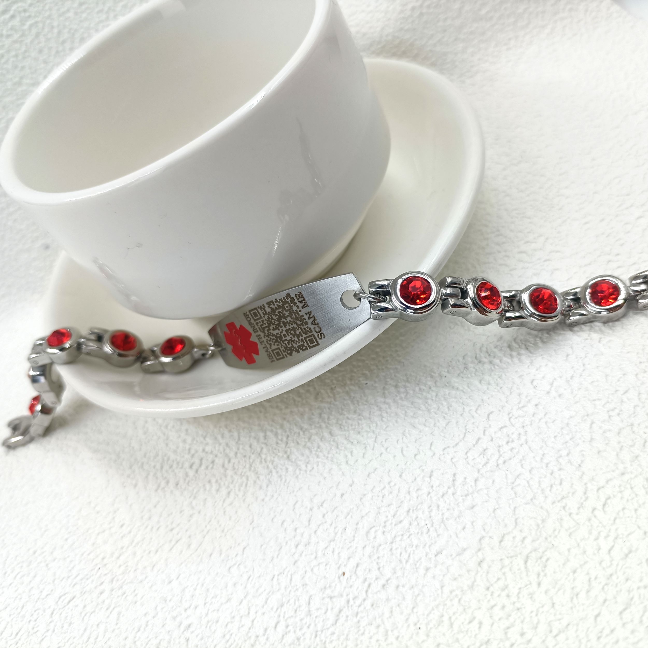 Editable QR Code Medical Alert Bracelet Stylish Stainless Steel Bracelet with Red Cubic Zirconia This elegant medical alert bracelet features...
