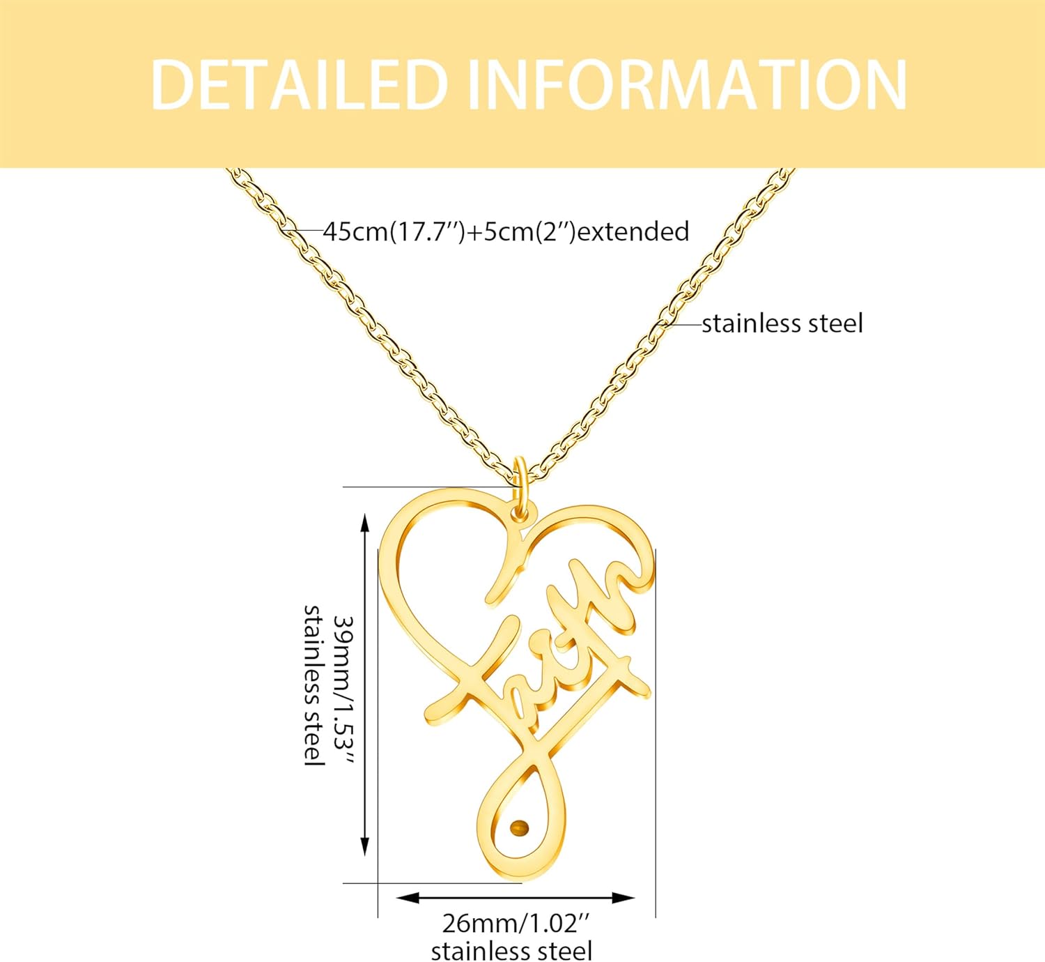 The pendant features a graceful heart outline combined with an infinity-style “Faith” script, symbolizing eternal belief, hope, and God’s promise. A real mustard seed is delicately set into the design, serving as a meaningful reminder that even the smallest faith can lead to great strength.