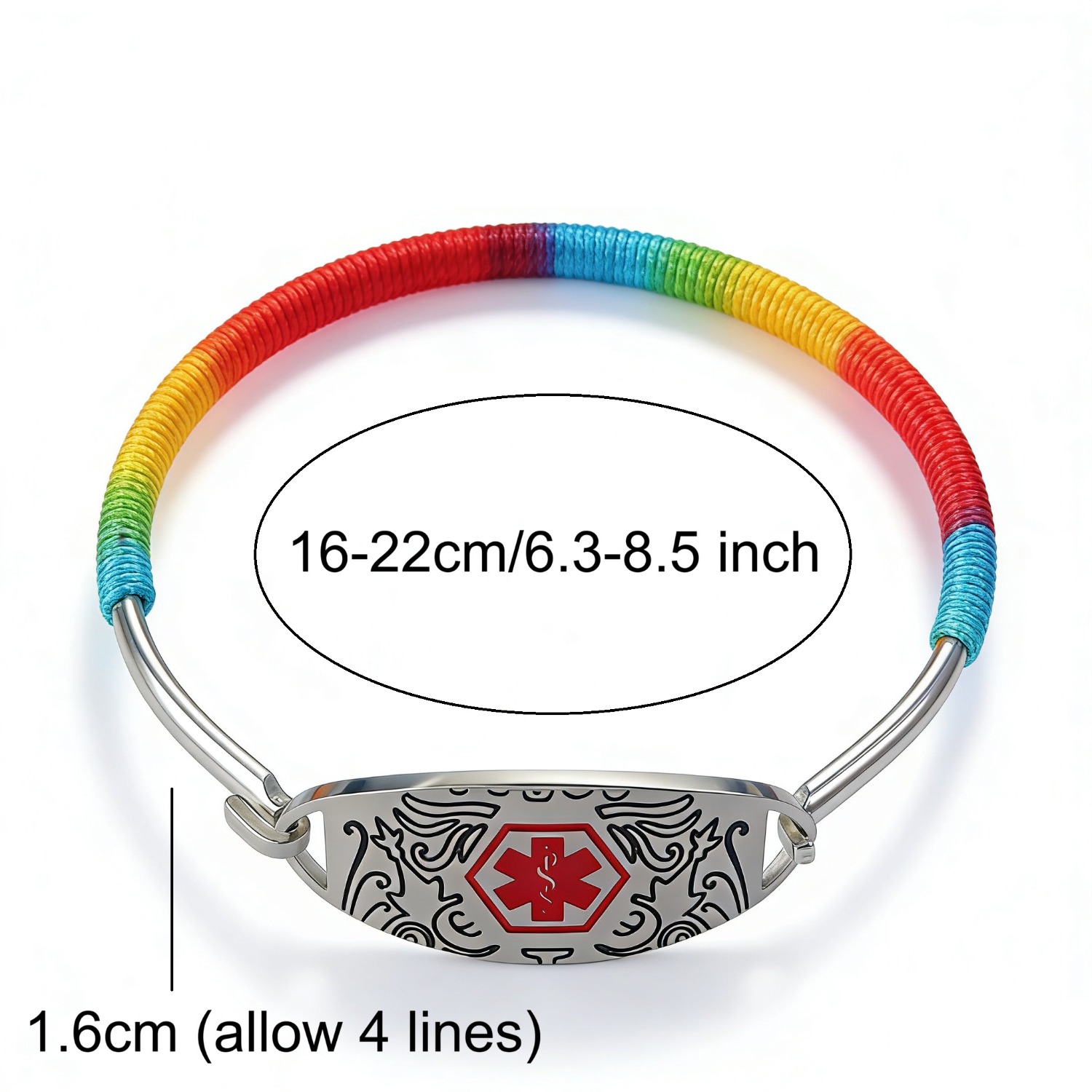 Medical Alert Bracelet for Women, Stainless Steel Cuff with Red Medical Symbol, Custom Engraving or Dynamic QR Code, Editable Emergency Health ID, Hypoallergenic Thread Wrapped Design