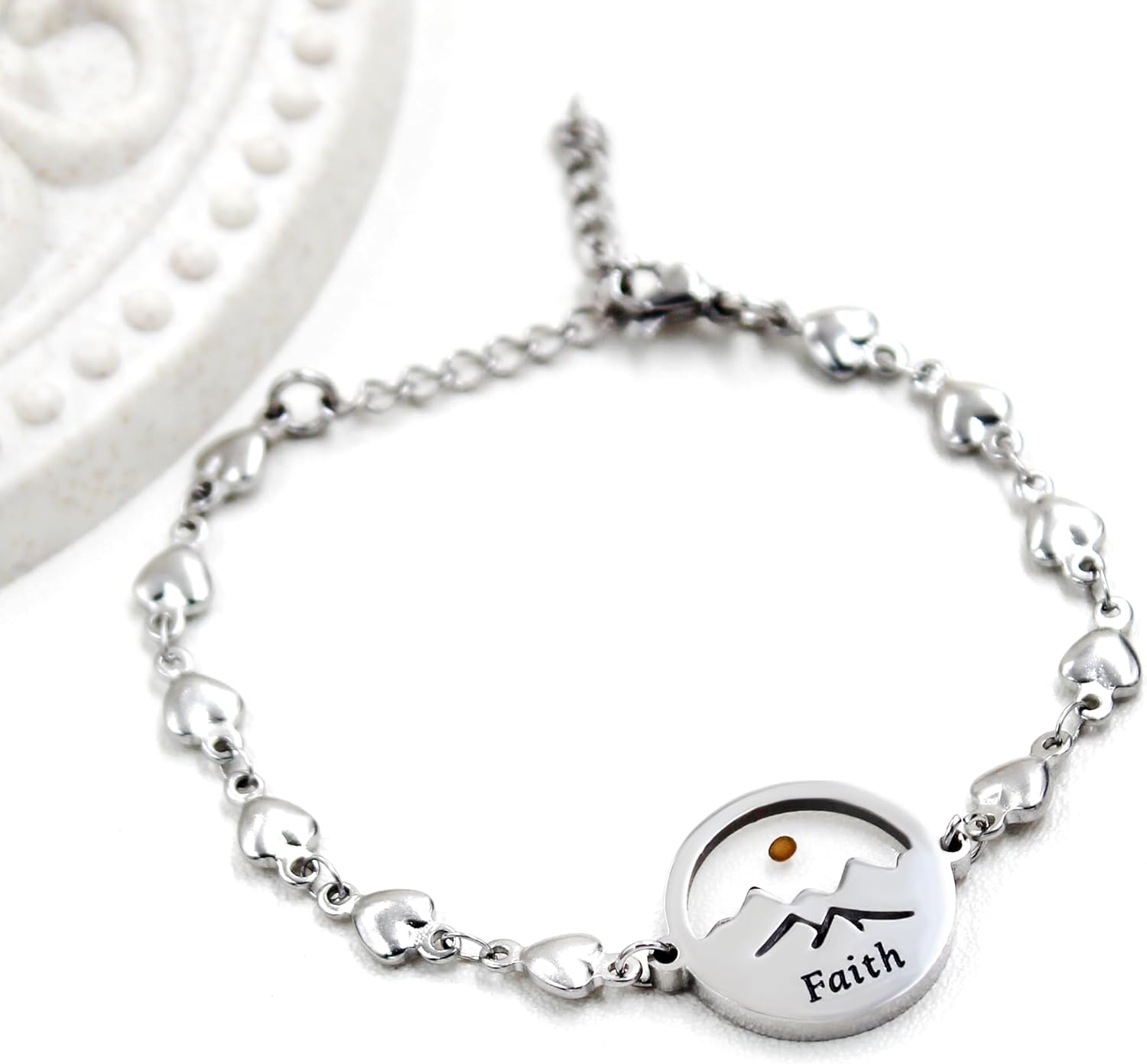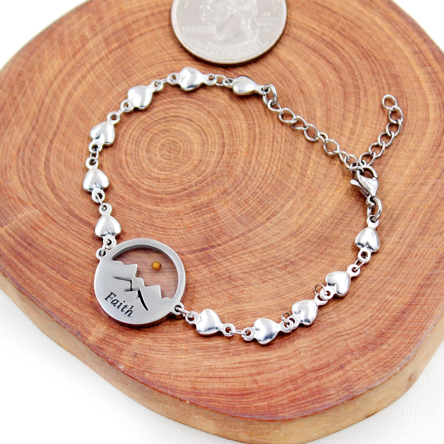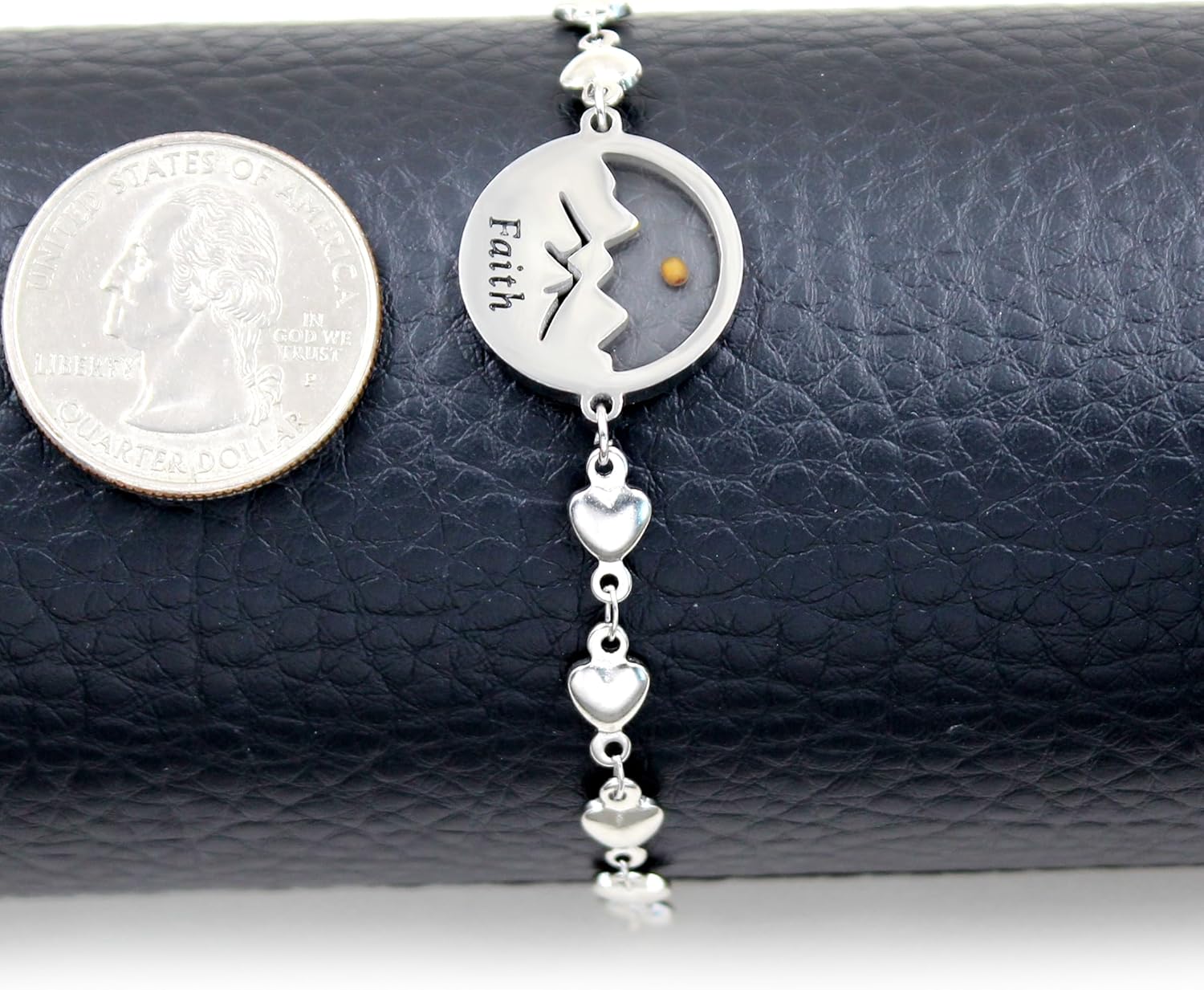 Mustard Seed Stainless Steel Faith Heart Link Bracelet for Women | Christian Religious Blessing Encouragement Jewelry Christmas Gift