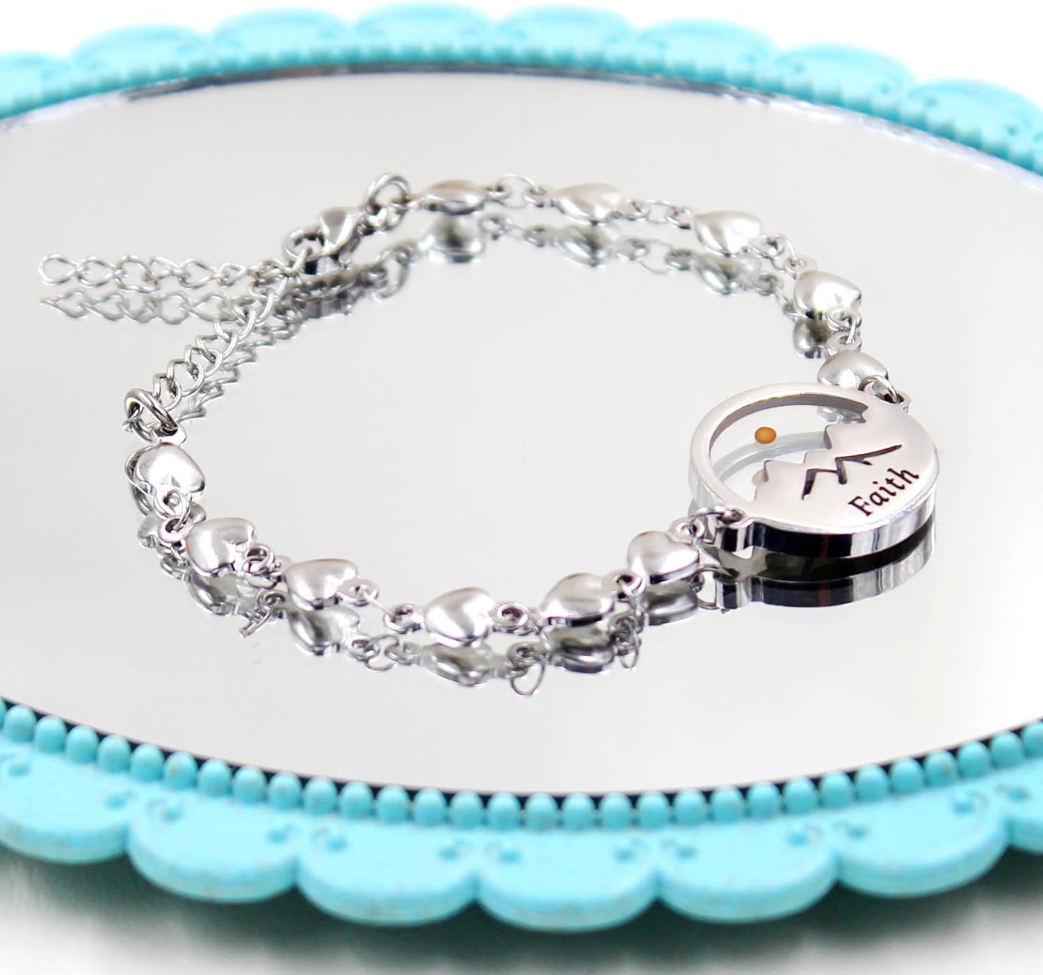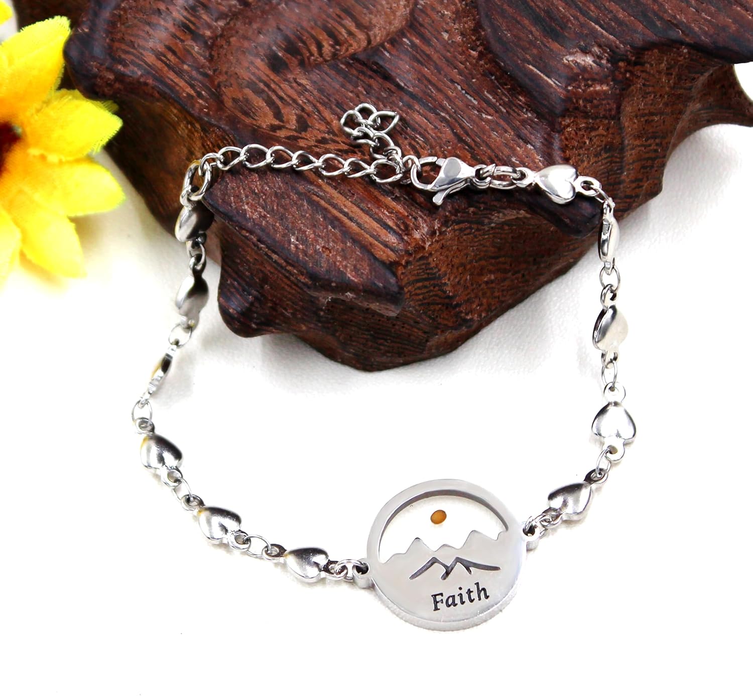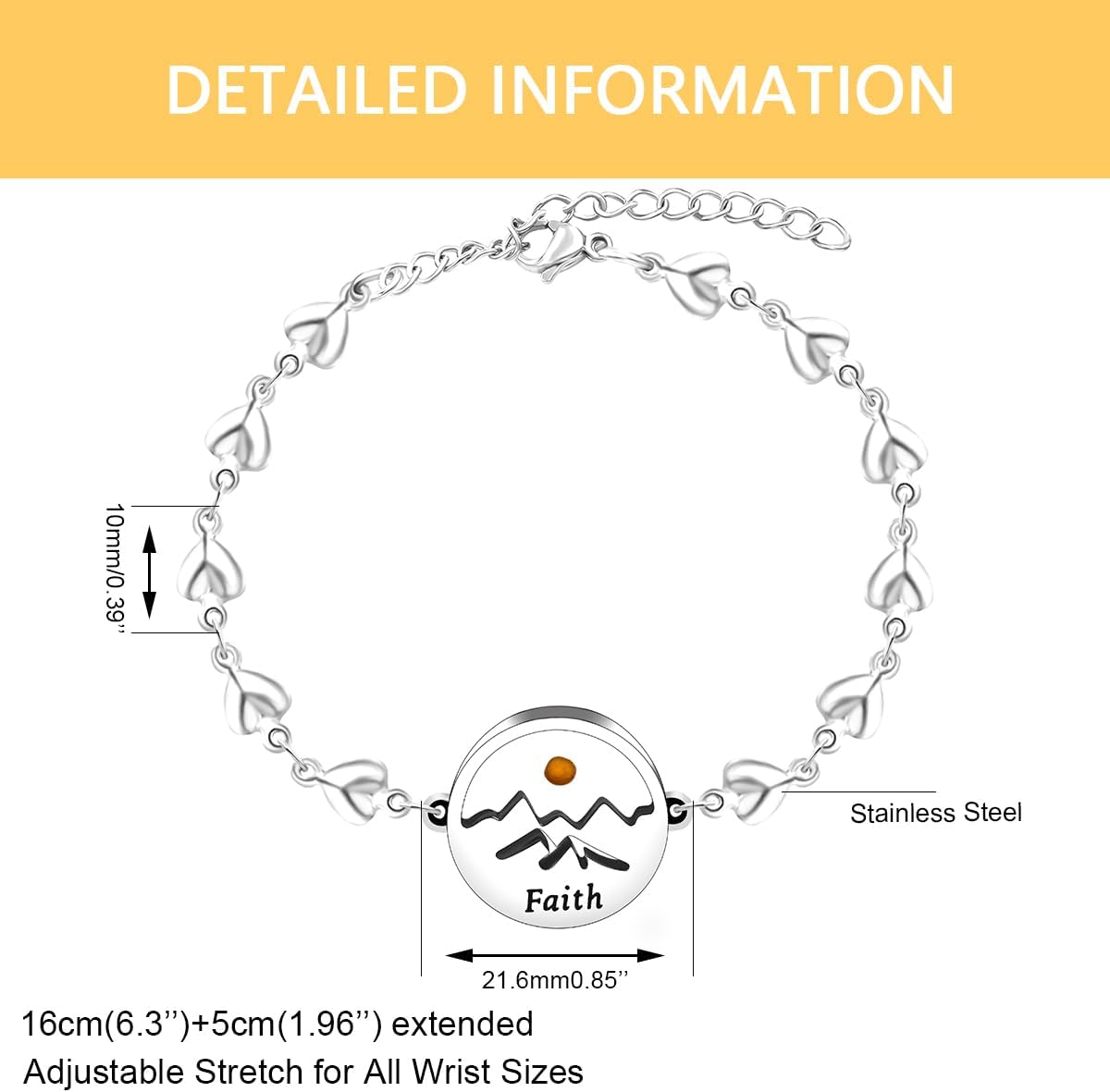 Mustard Seed Stainless Steel Faith Heart Link Bracelet for Women | Christian Religious Blessing Encouragement Jewelry Christmas Gift