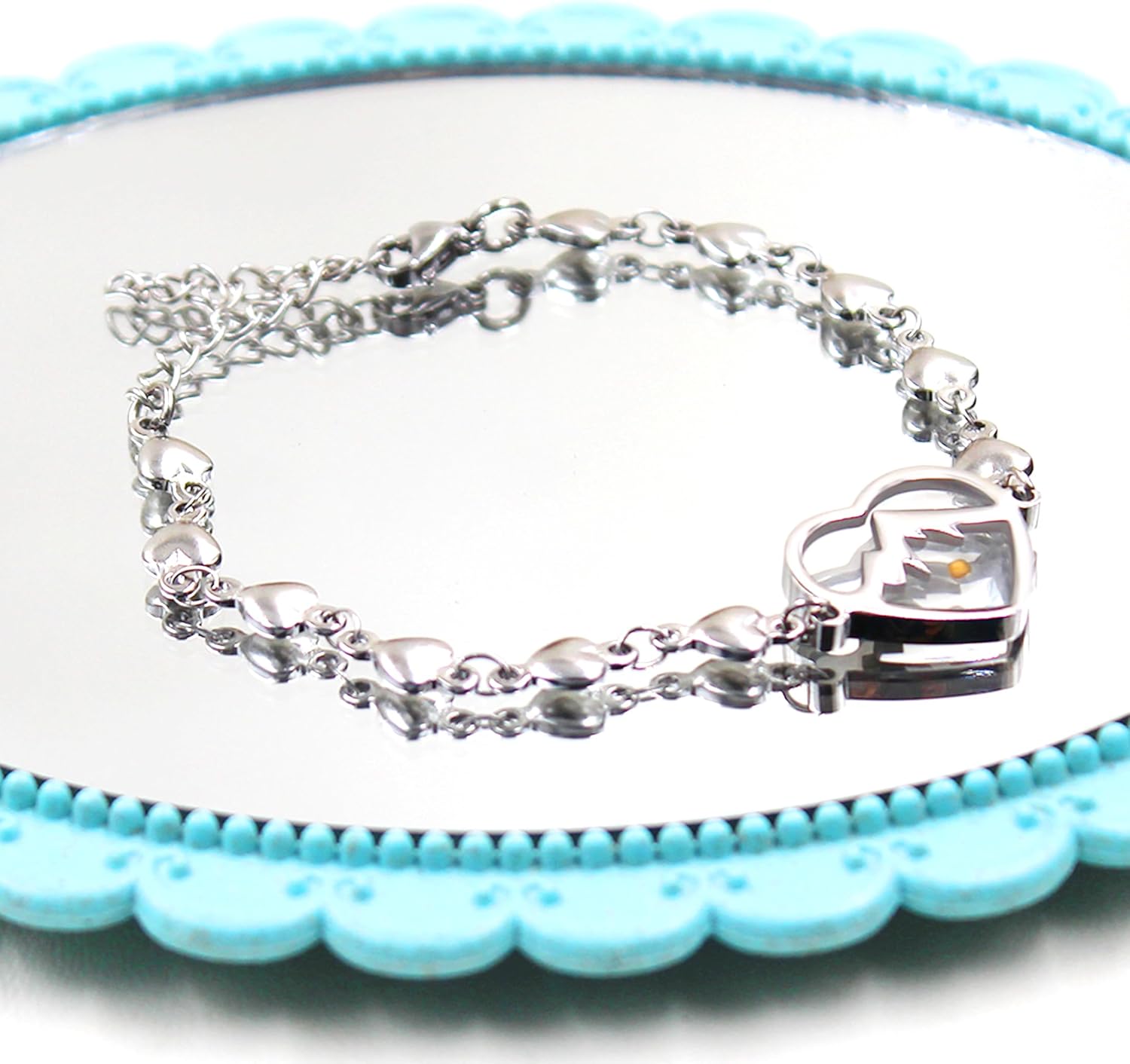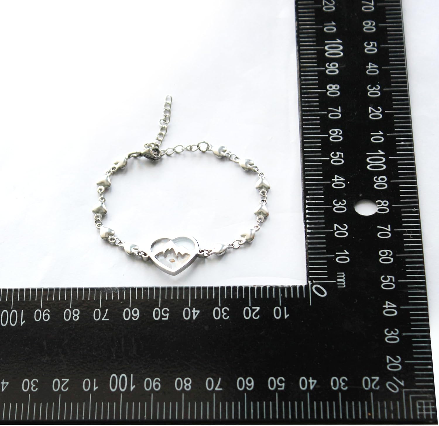 The elegant heart-link chain adds a feminine touch, while the adjustable length of 16cm + 5cm extension (6.3” + 2”) allows a comfortable and secure fit for most women.