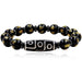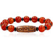 The round beads are engraved with Buddhist mantra-style symbols, representing mindfulness, protection, and inner balance during meditation or daily wear.