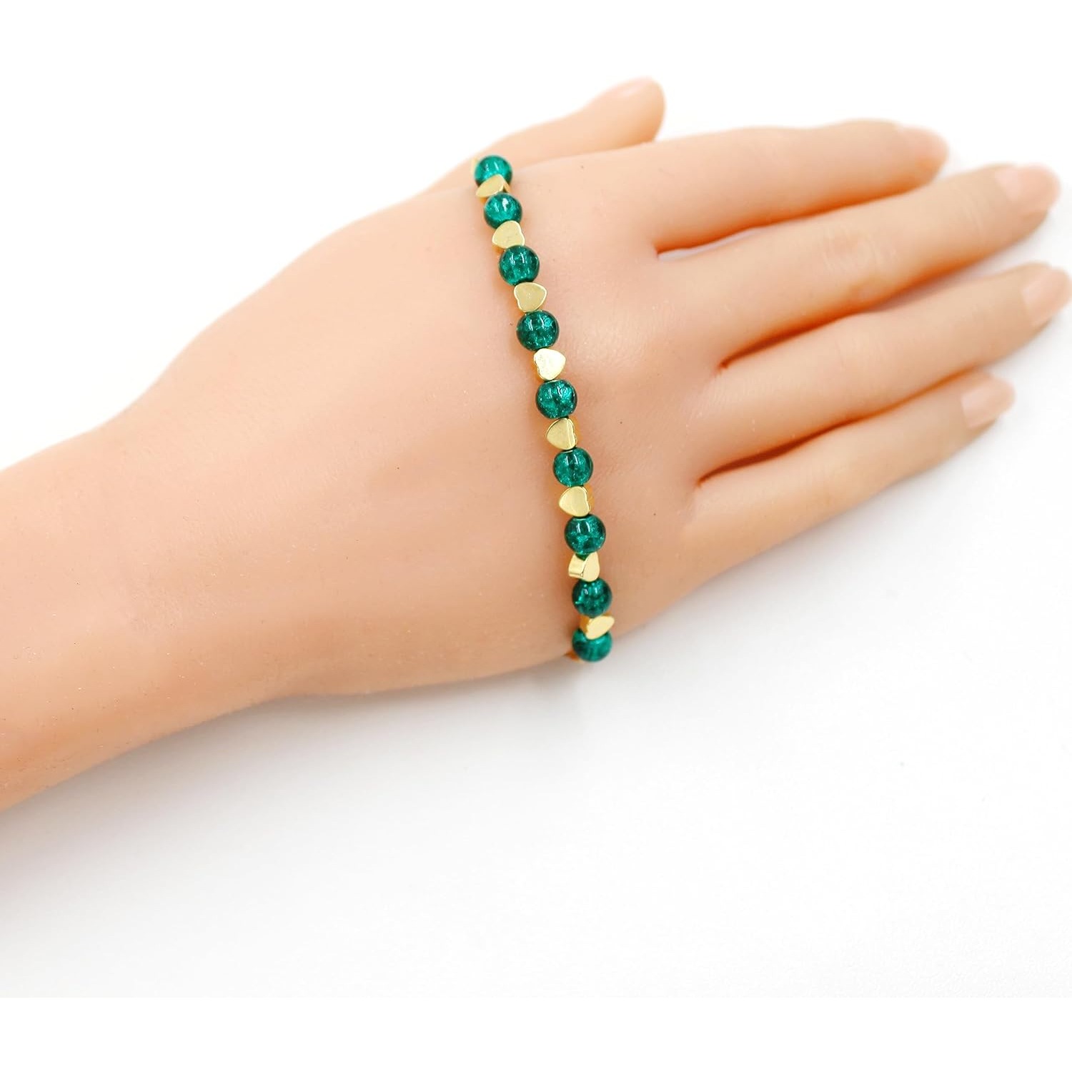Available in Green, Pink, and Purple crack stone beads with gold heart accents. Stylish design suitable for daily wear.