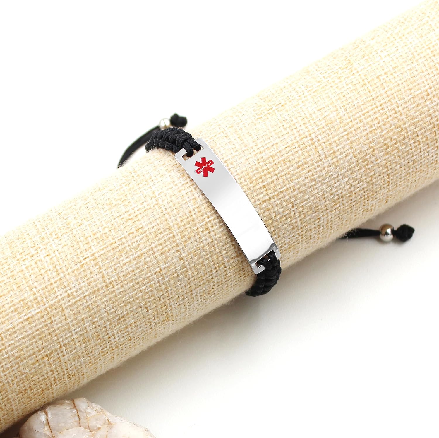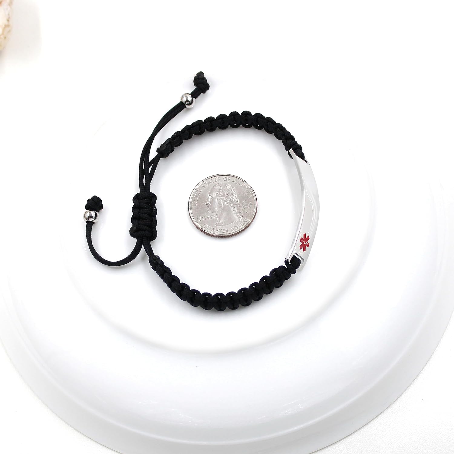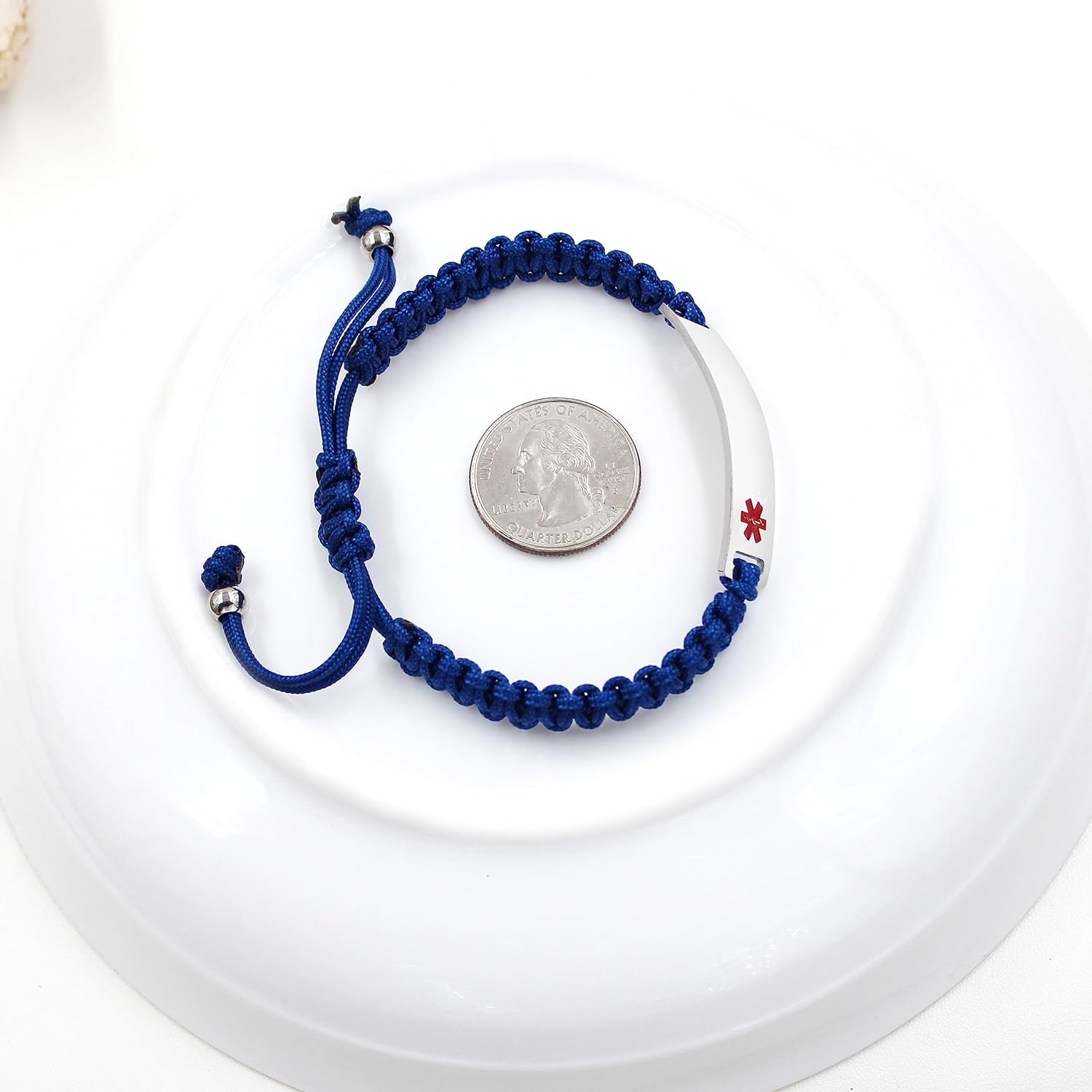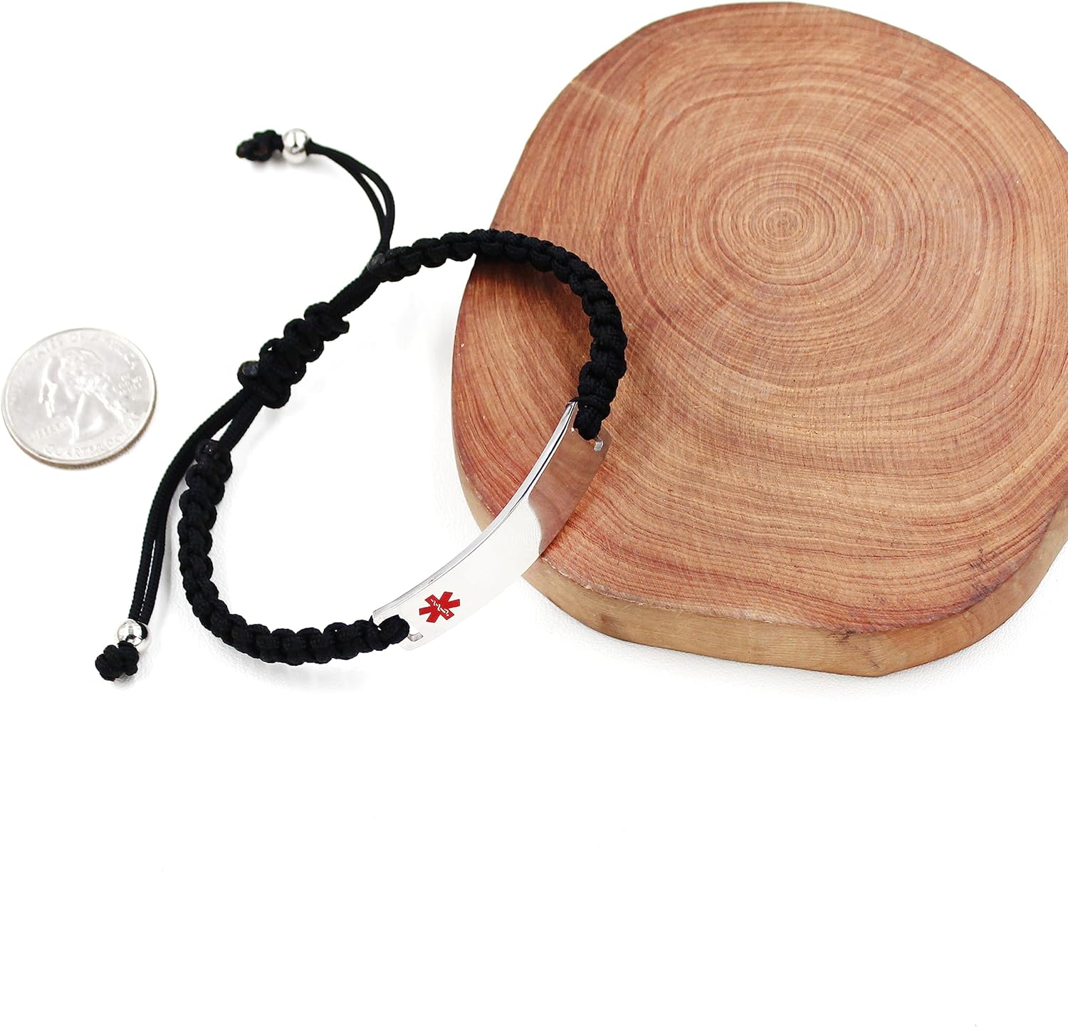 • ❤Material: the medical bracelet is made ofhigh quality stainless steel and nylon rope, comfortable to wear, lightweight and hypoallergenic. Versatile for work, travel or home wear.