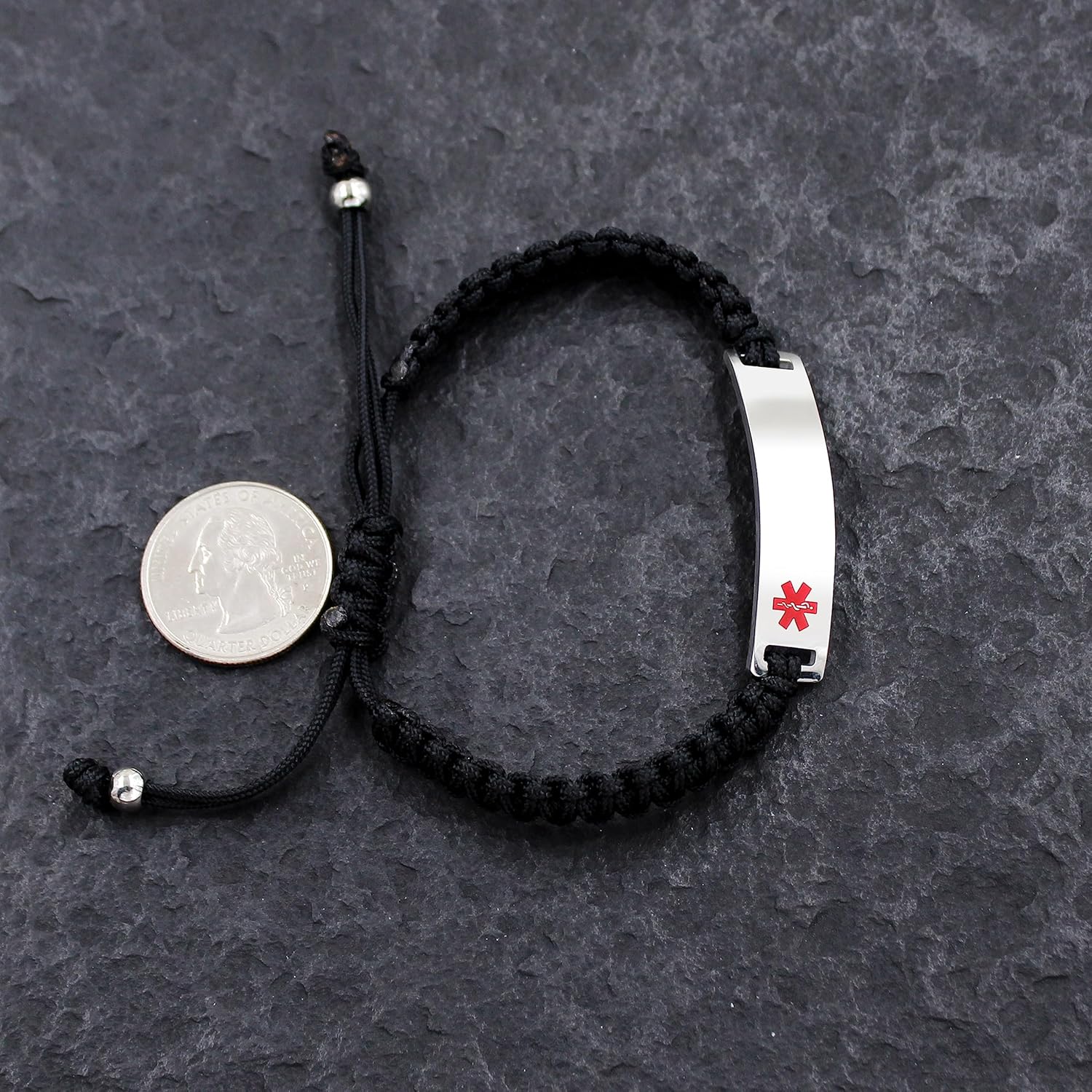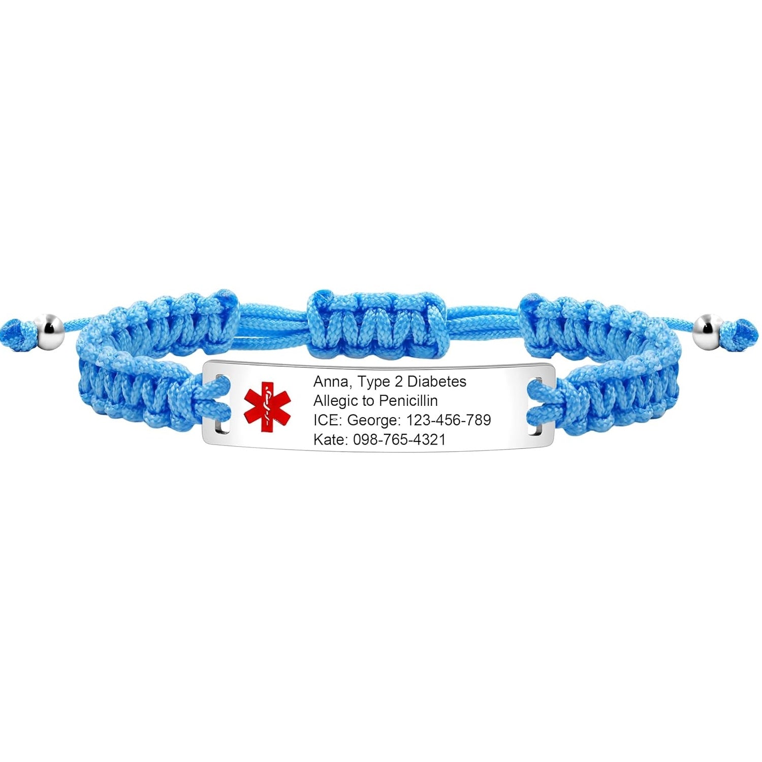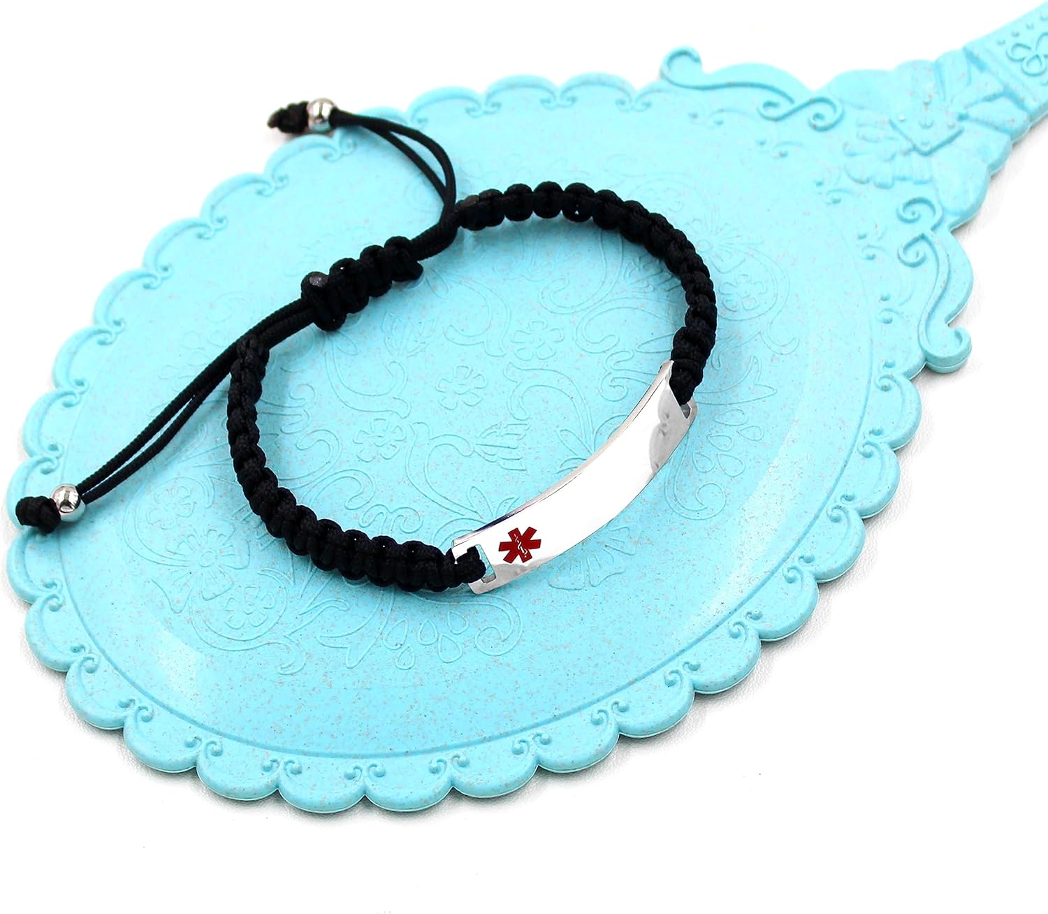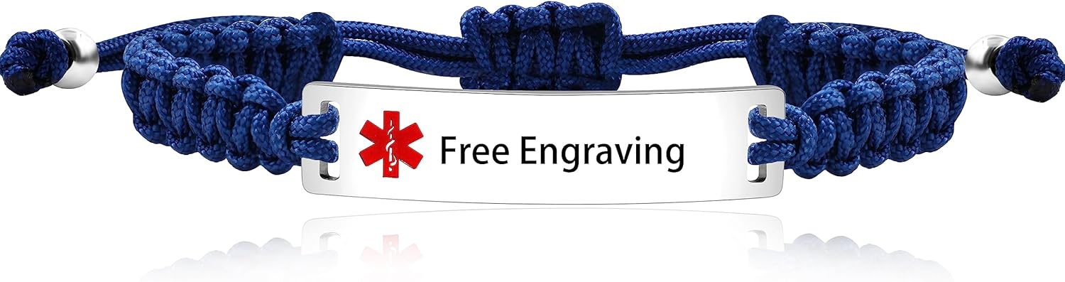 • ❤Material: the medical bracelet is made ofhigh quality stainless steel and nylon rope, comfortable to wear, lightweight and hypoallergenic. Versatile for work, travel or home wear.