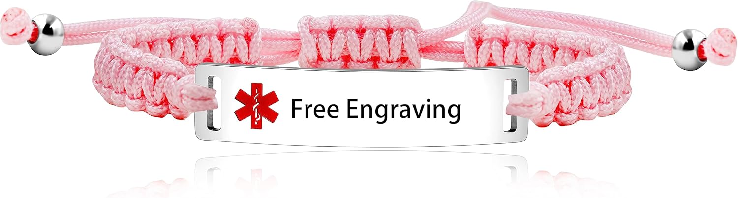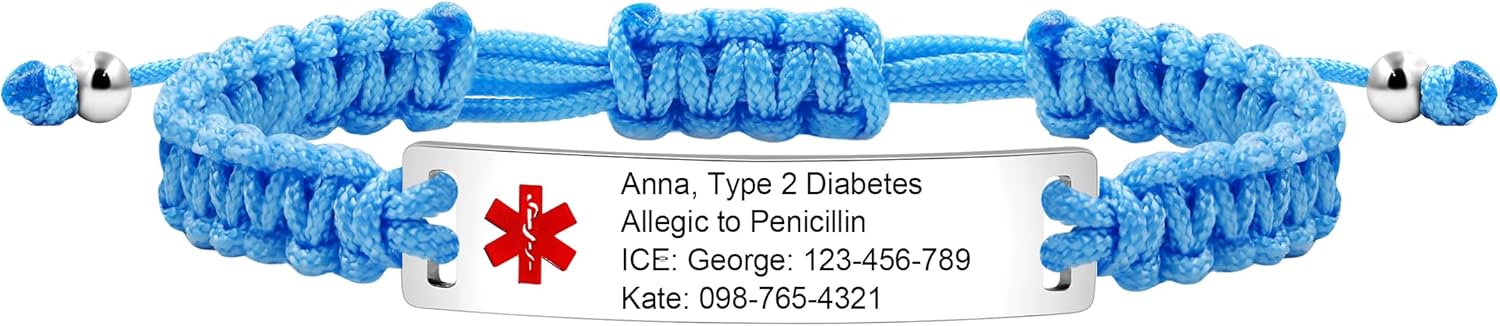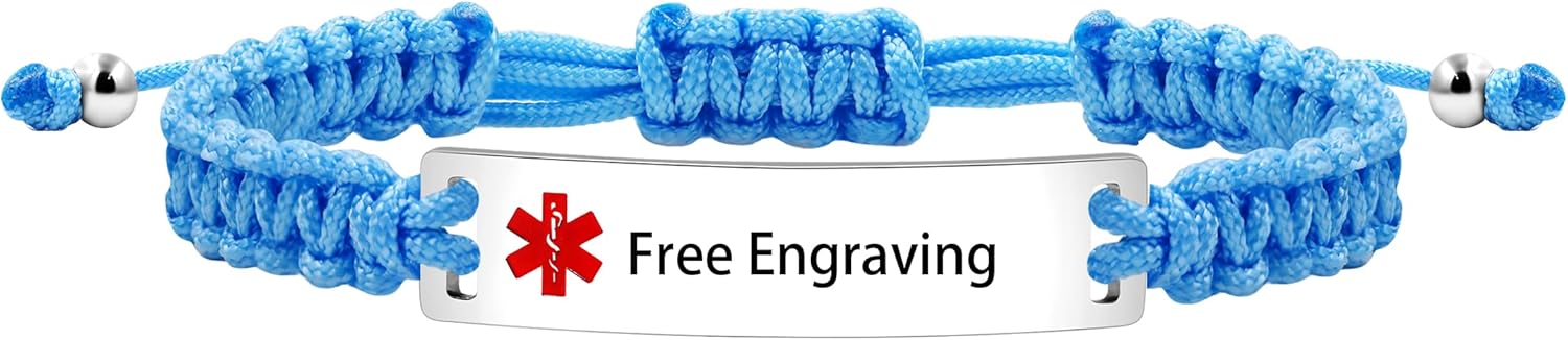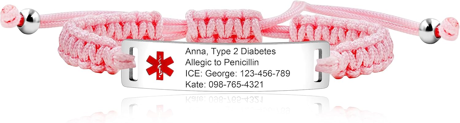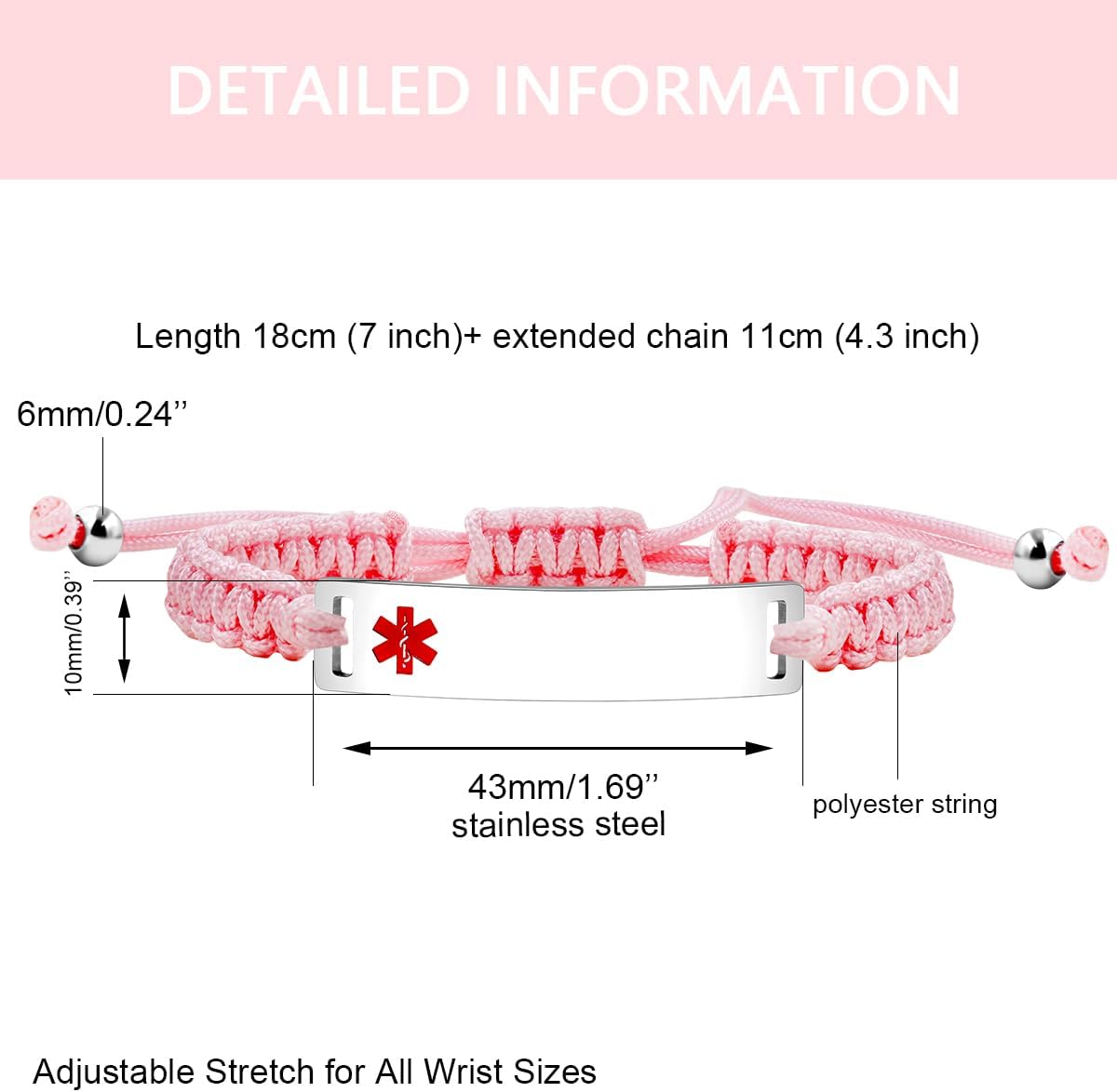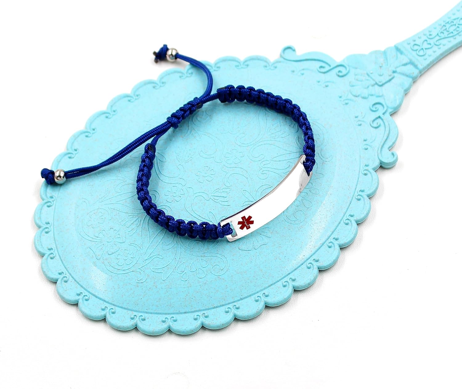 • ❤Material: the medical bracelet is made ofhigh quality stainless steel and nylon rope, comfortable to wear, lightweight and hypoallergenic. Versatile for work, travel or home wear.