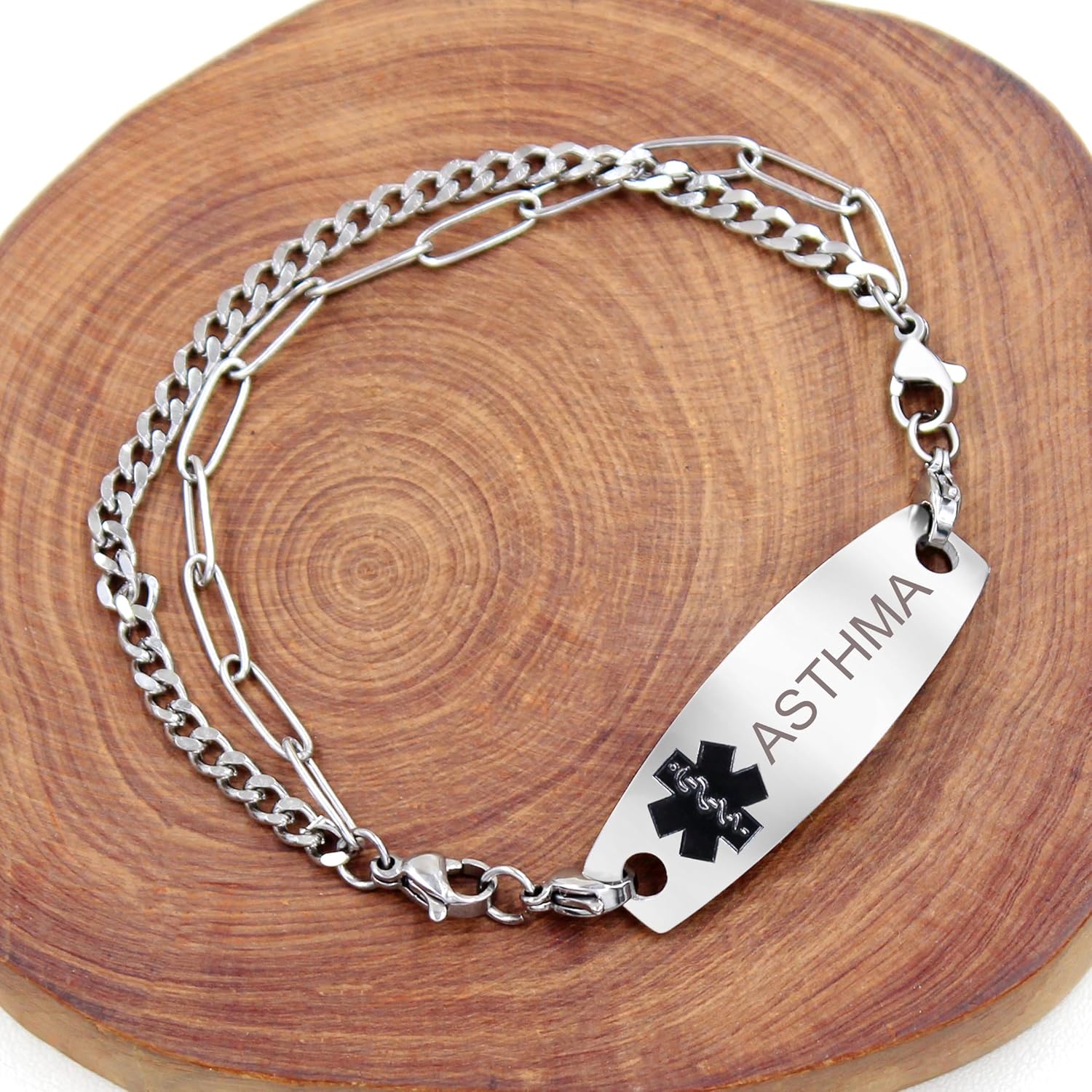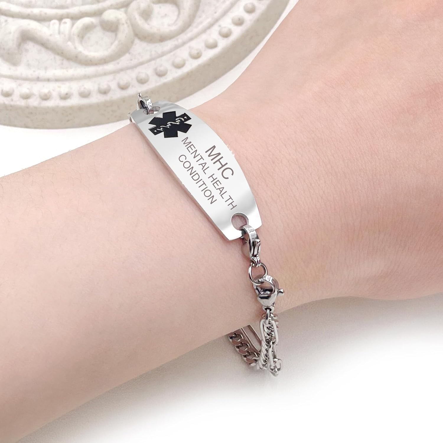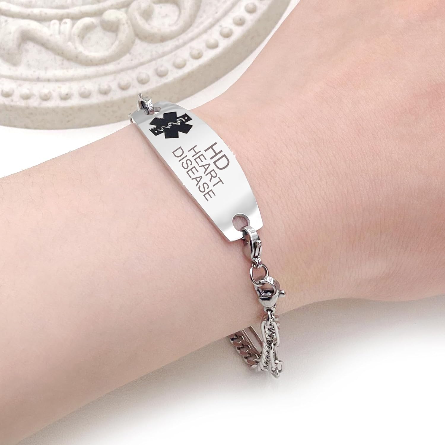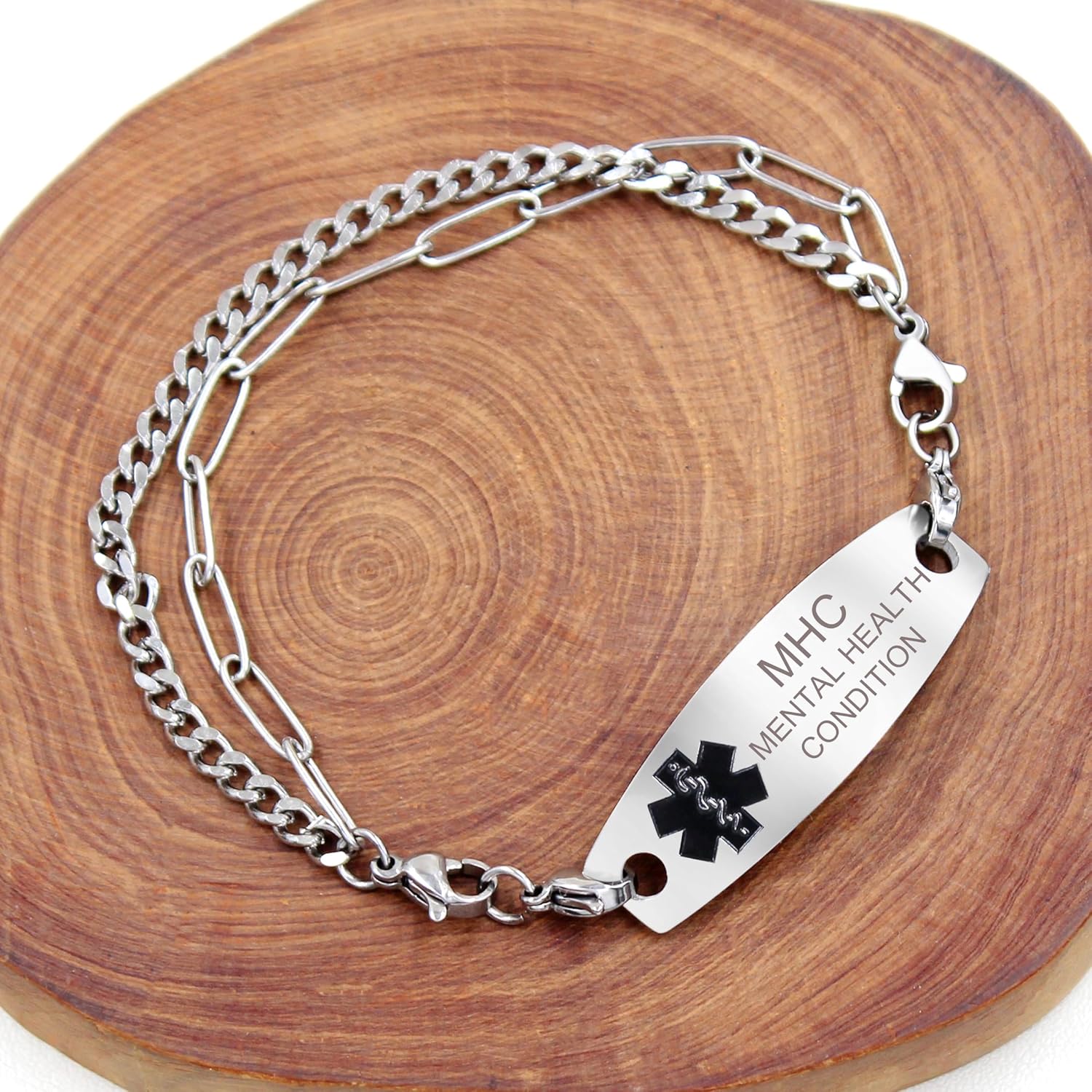2. Material: Made from high-quality stainless steel, this medical alert bracelet is resistant to rust and corrosion, ensuring long-lasting durability.