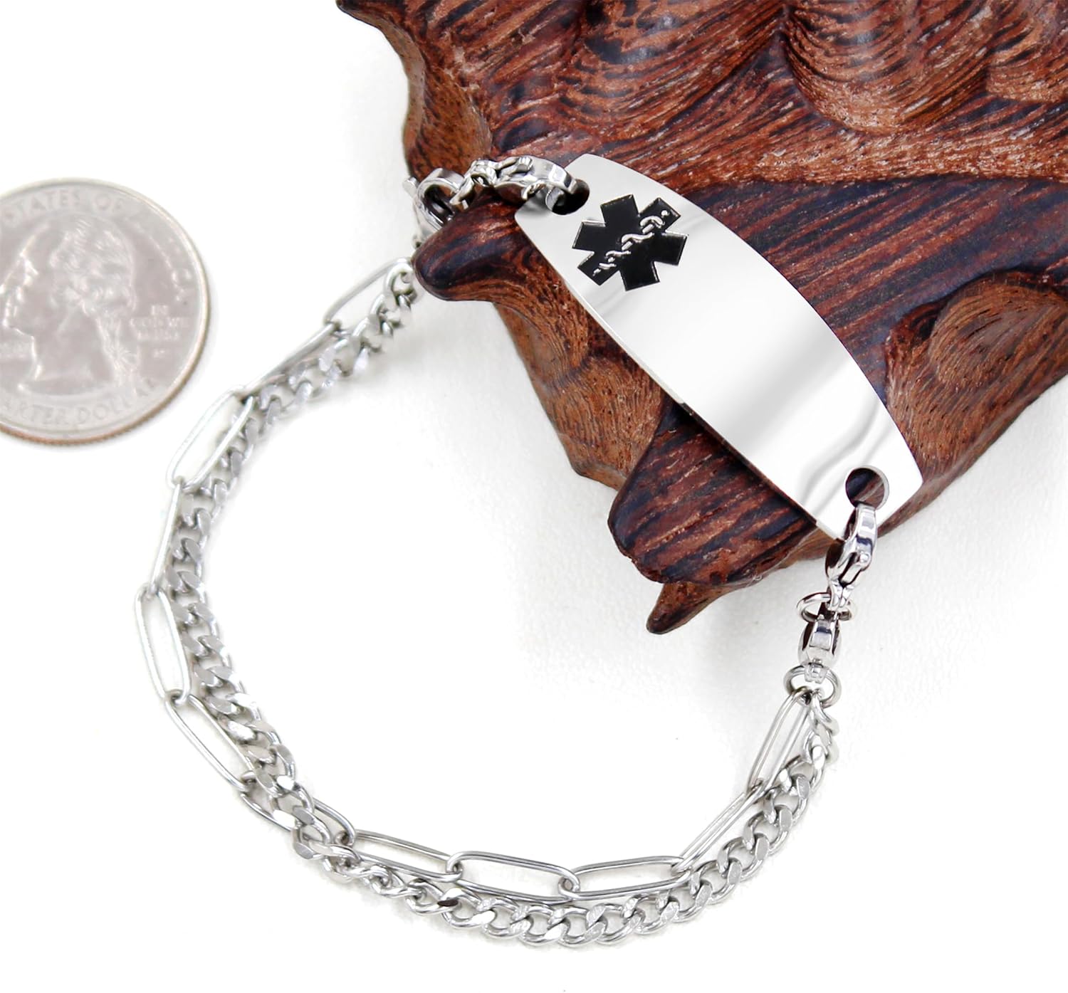 Uloveido Men's Medical Alert Bracelet - Stainless Steel Interchangeable Emergency ID with Free Custom Engraving, 7.87" Ladies First Response to Distress Jewelry