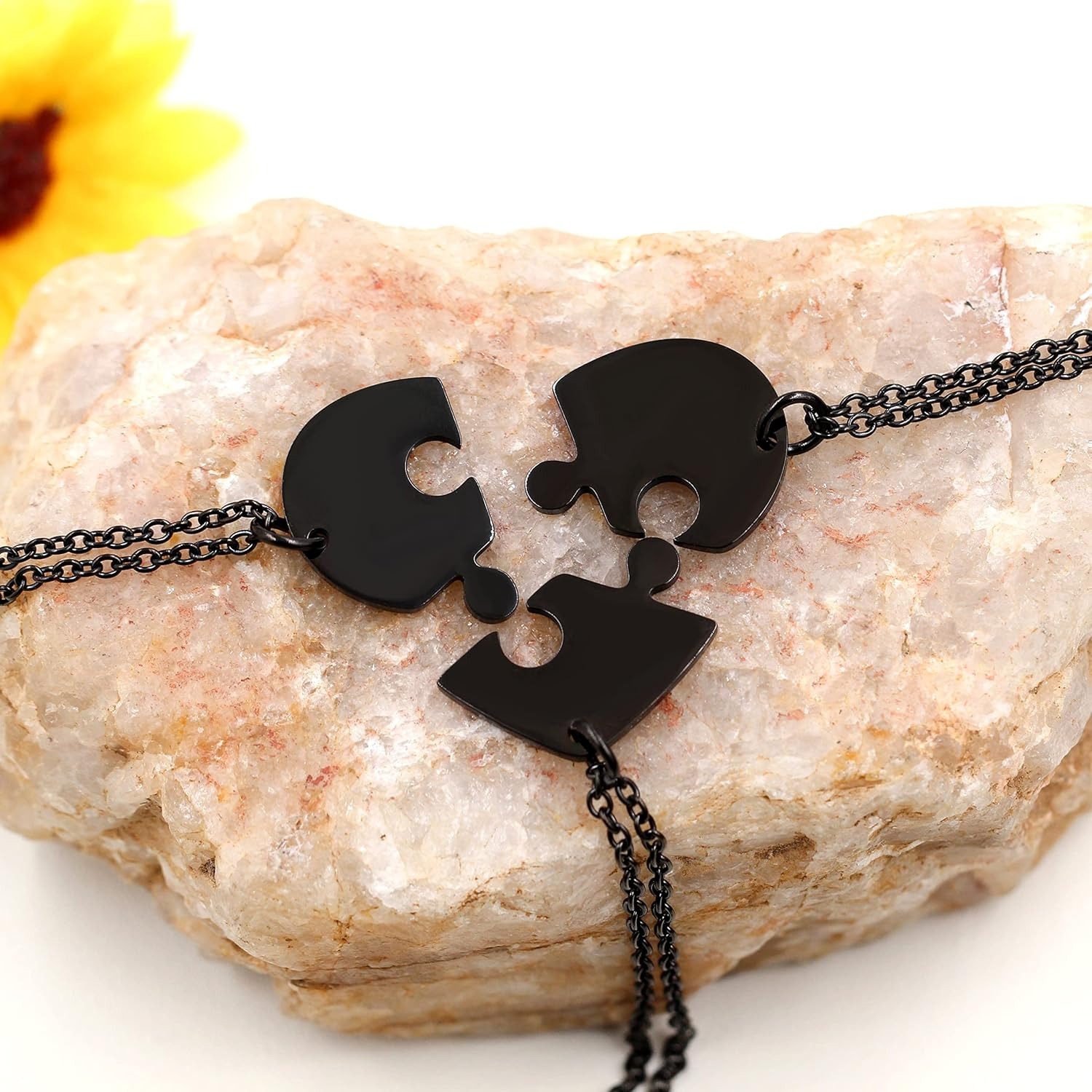 Personalize each puzzle piece with one name, initial, or meaningful word. When worn together, the pieces form a complete heart—representing unbreakable bonds and shared memories.