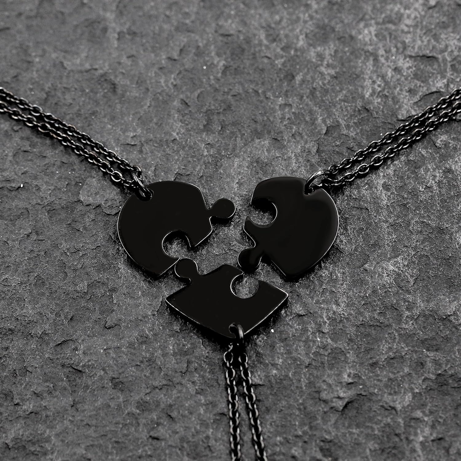 Uloveido Personalized 3 Name Puzzle Heart Necklace Stainless Steel Custom Engraved Interlocking Heart Pendant Best Friends Sisters Family Matching Friendship Jewelry Gift