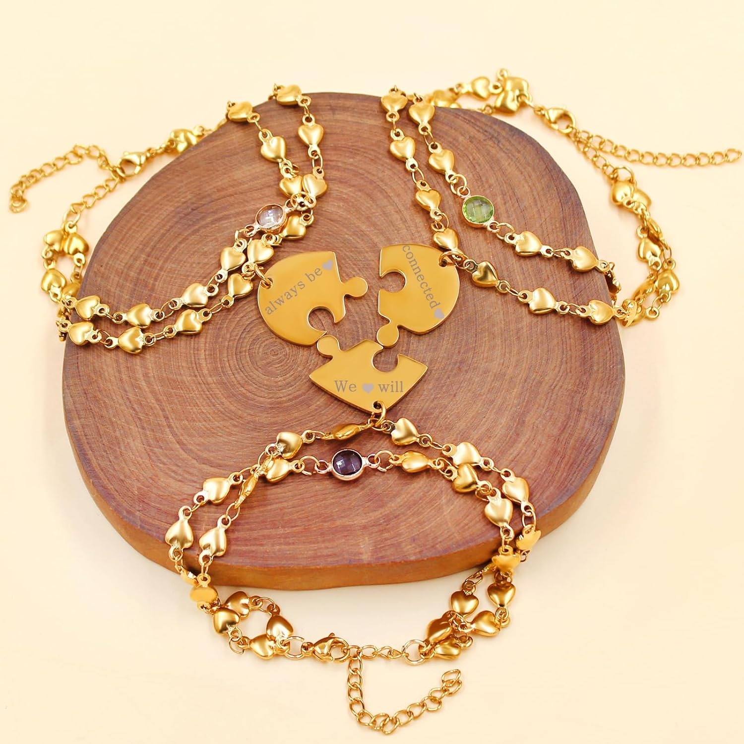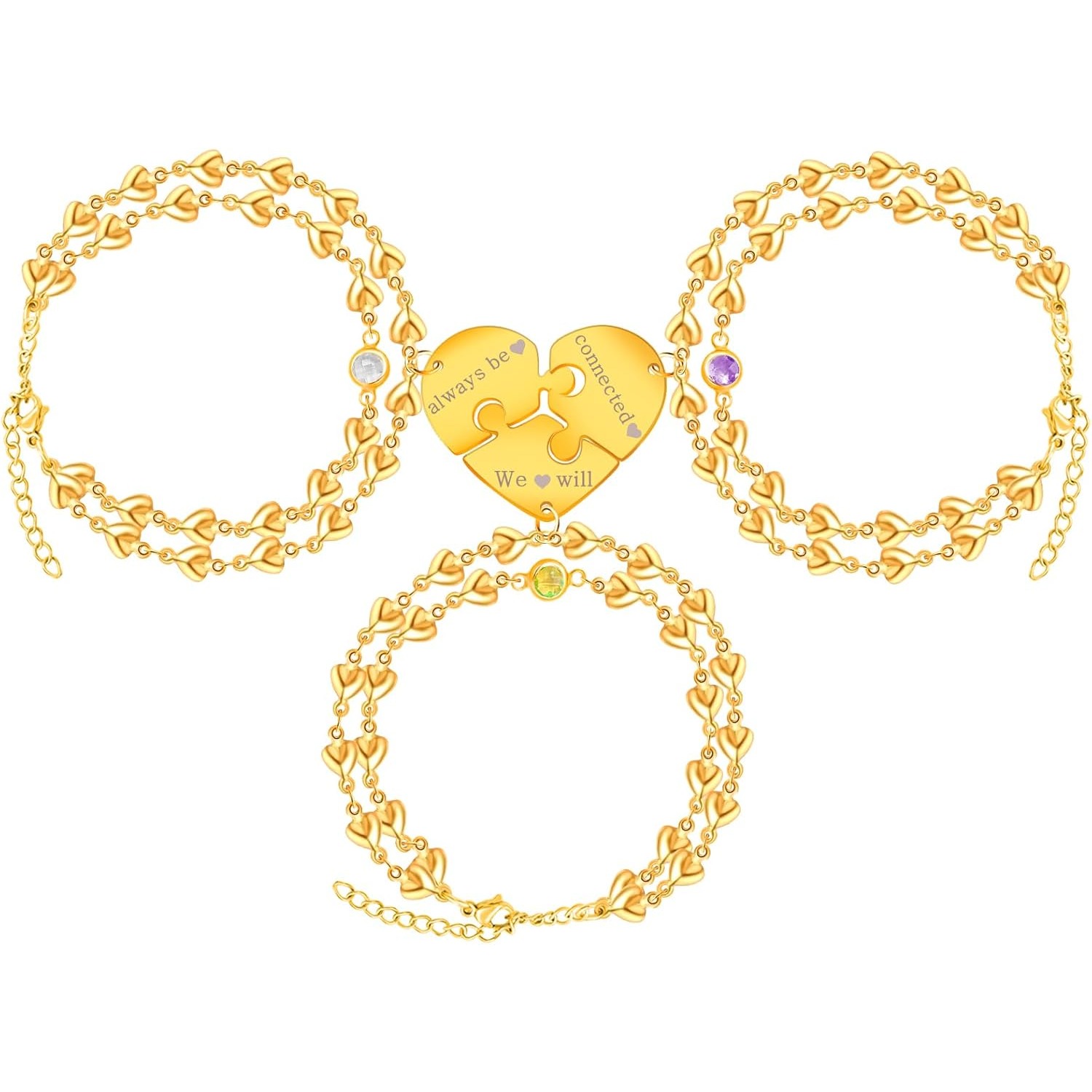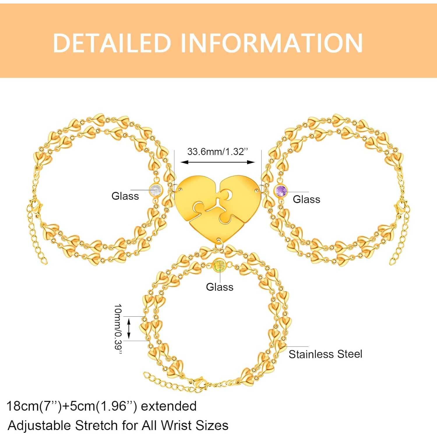 πŸ’› Three Hearts. One Friendship. Celebrate your unbreakable bond with this Uloveido Personalized 3-Piece BFF Heart Puzzle Bracelet Set, beautifully...