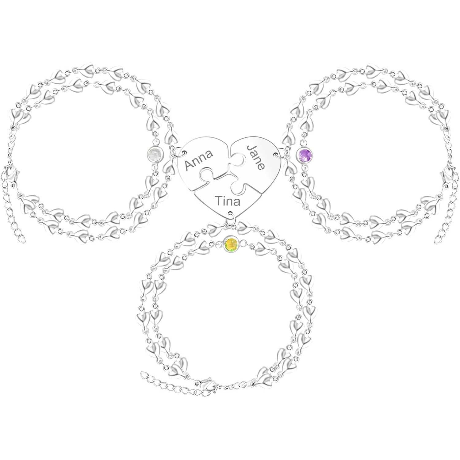 Uloveido Personalized 3 Pieces BFF Heart Puzzle Bracelets with 3 Gift Boxes – Custom Name Stainless Steel Matching Friendship Bracelets for 3 Best Friends
