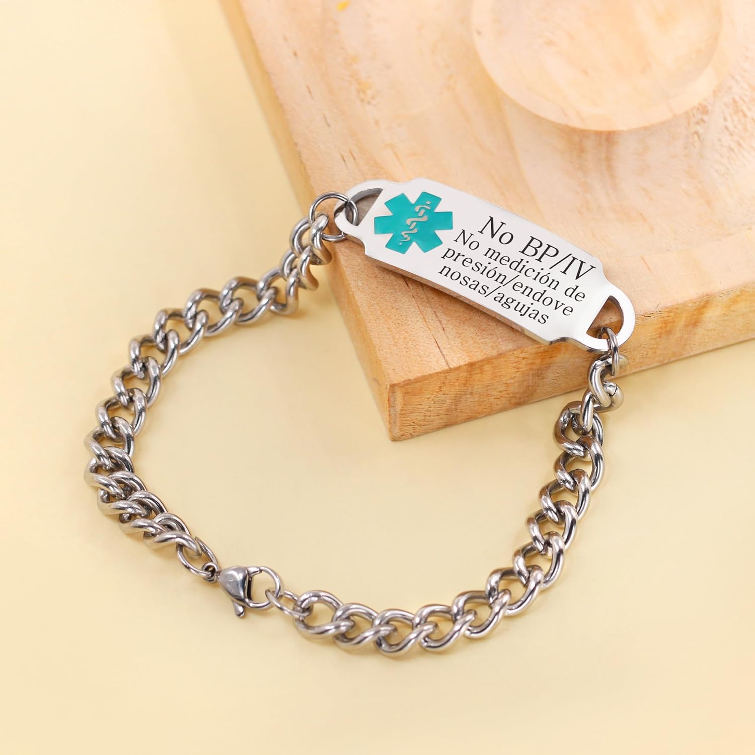 6. Keywords: This product is optimized with keywords like "Medical ID Bracelet," "Waterproof Medical Bracelet," "Custom Medical Alert Bracelet," "Hypoallergenic Sports Bracelet," "Stainless Steel Health Alert Jewelry," and "Medical ID Sports Bracelet," ensuring it ranks highly in relevant searches.