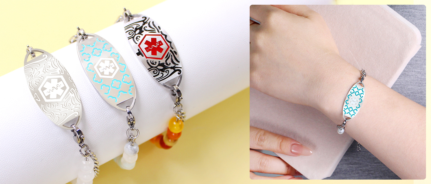 Perfect for adults who need a medical ID bracelet for allergies, diabetes, chronic conditions, or emergency preparedness. A thoughtful gift for women who value both safety and modern jewelry design.